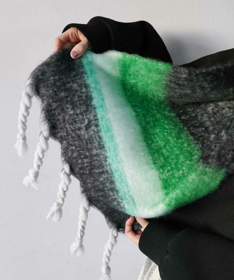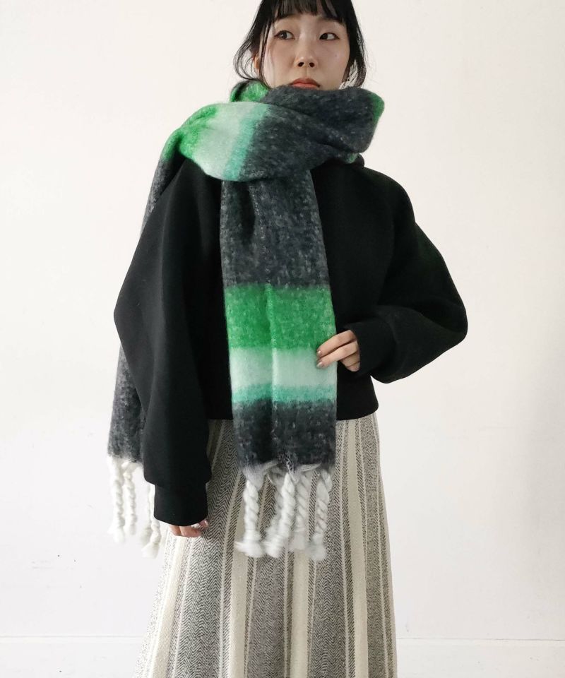 ボリュームたっぷりなので、ぐるっと巻いても長めに垂らしてもサマになります。