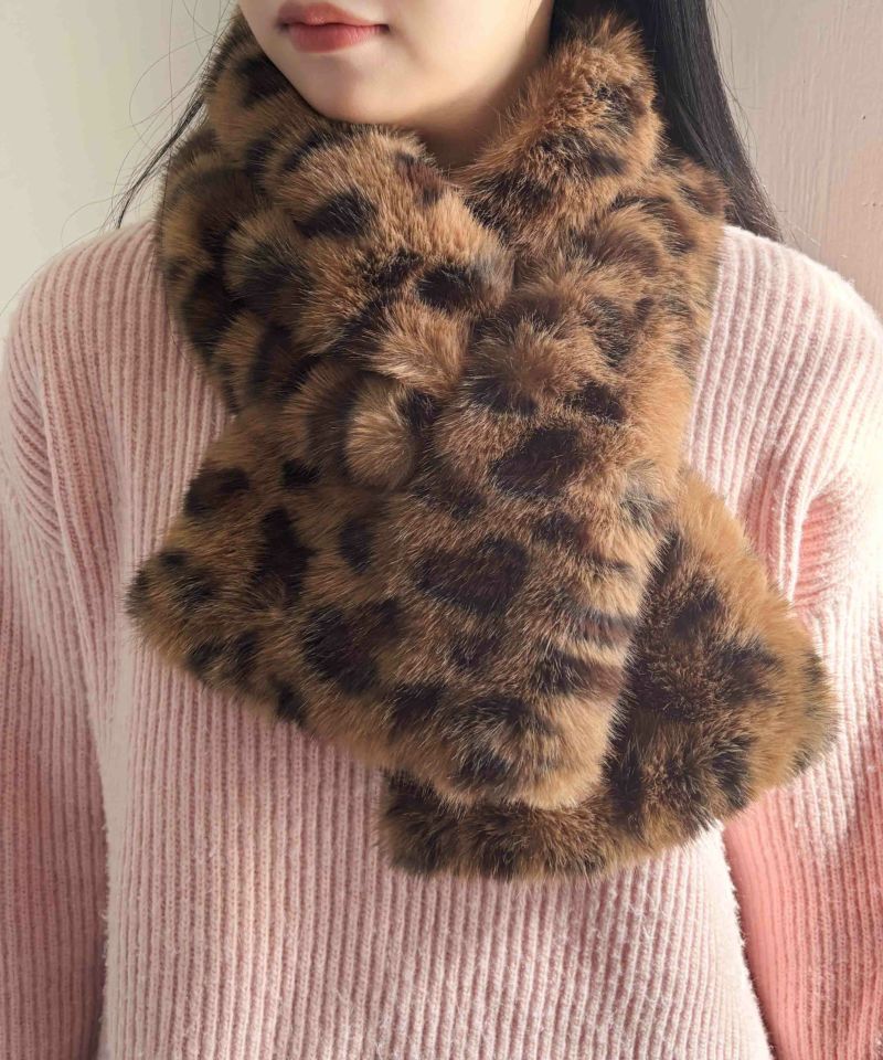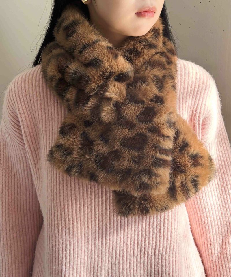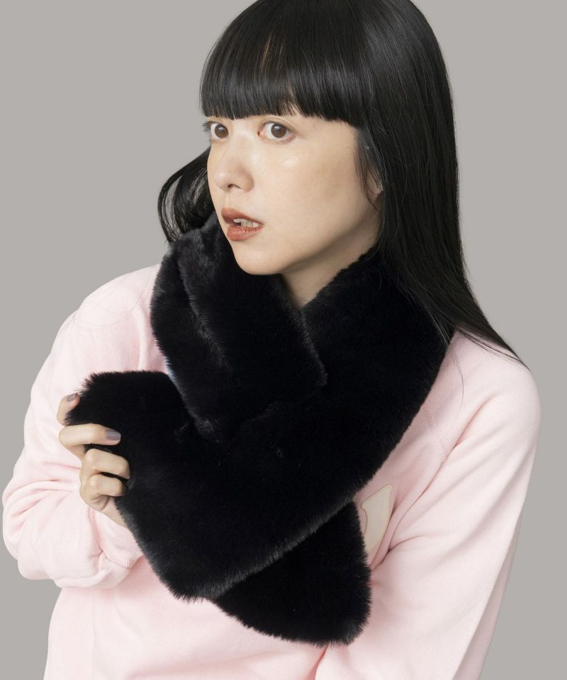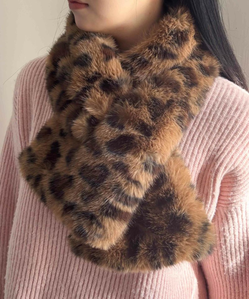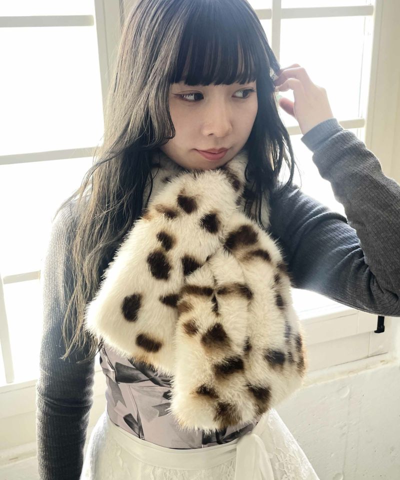 異なるフェイクファーを表裏に使用した、リバーシブル仕様のティペット。
