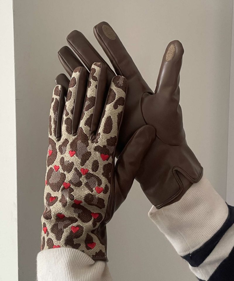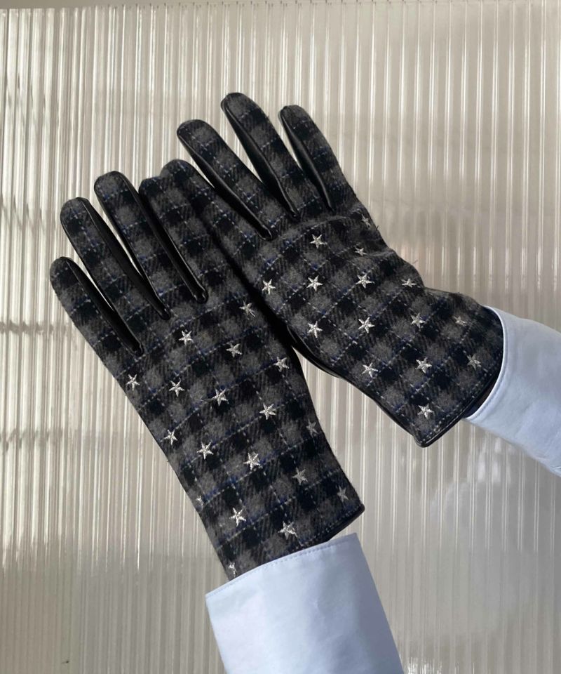 かわいい秋冬のチェックやジャガードの上から小さな総柄刺繍を施したグローブです。