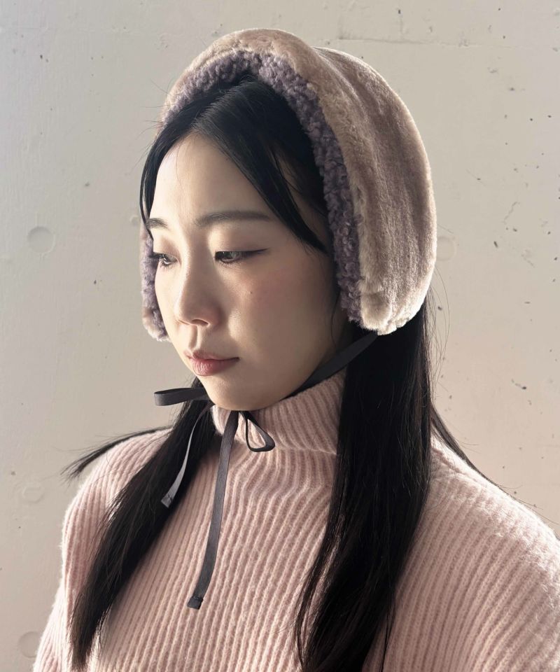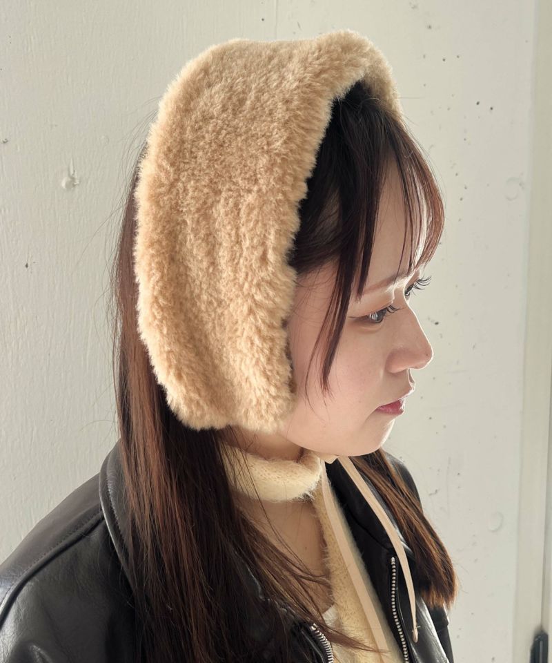 リバーシブルで使えるフェイクファーのマフは、シンプルながら計算されたパターンが特徴。