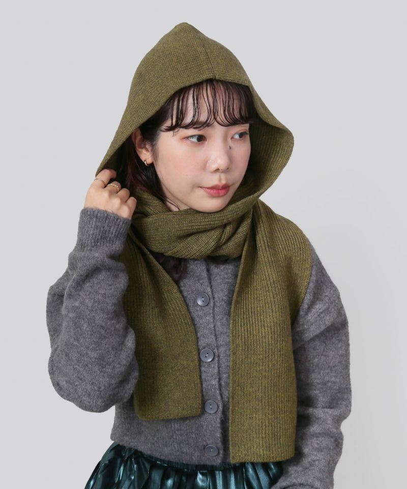 トレンドのフード付きのマフラーは顔周りがぴったりしすぎず、つけやすいのがポイントです。