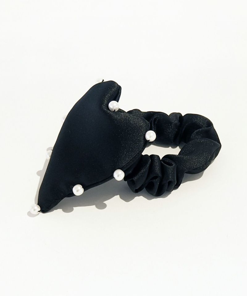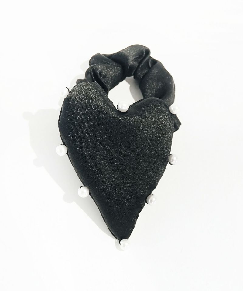 サテンのハートをパールでトリミングしたデザインのシュシュ。 程よいボリューム感がヘアアレンジのポイントに。 スタイリングにガーリーテイストを簡単にプラスできます。