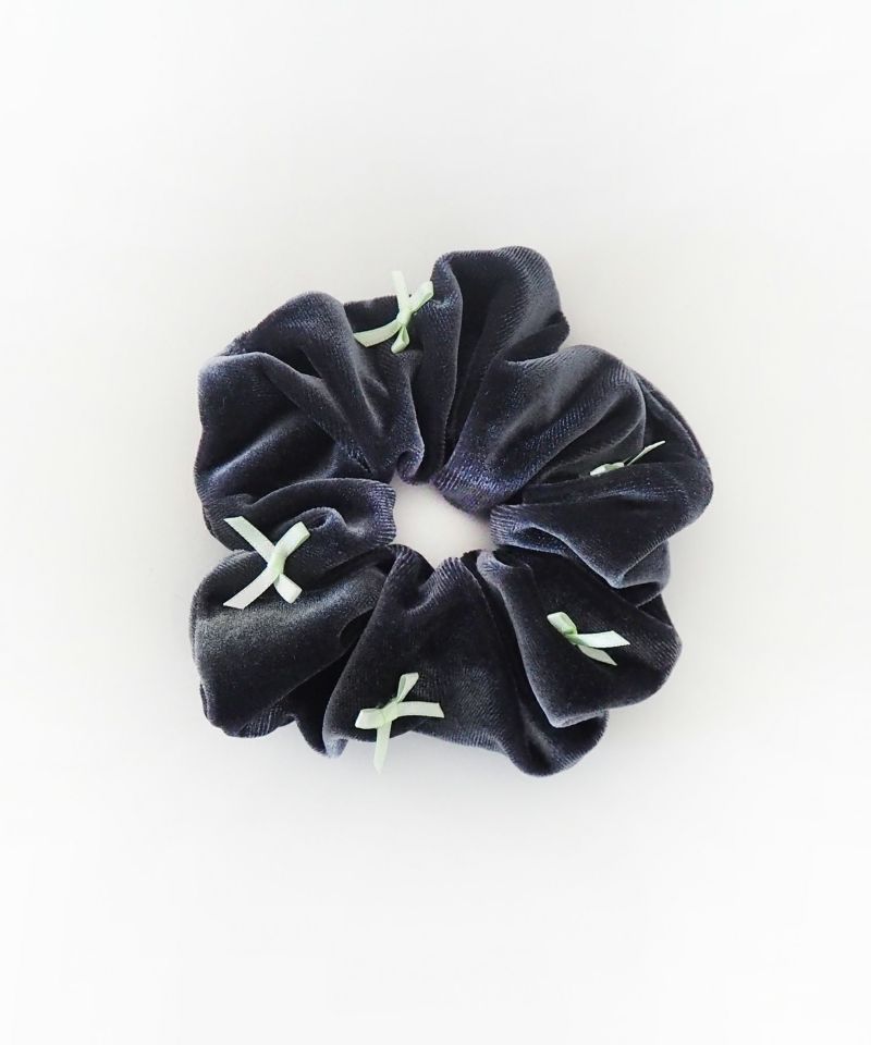 ミニリボンが可愛いシュシュ。 程よいボリューム感がヘアアレンジのポイントに。 ベロア素材なので、スタイリングが上品にまとまります。