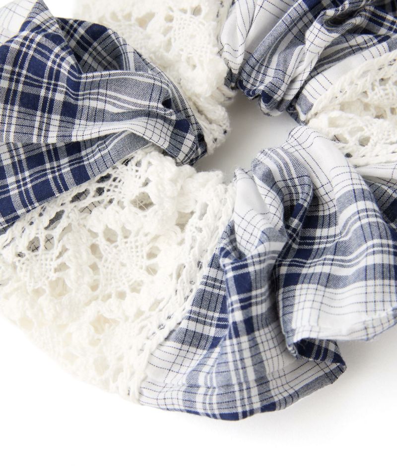 ヴィンテージライクなチェック柄にレースを組み合わせた、ガーリーな雰囲気のシュシュ。 カジュアルコーデにも甘めスタイルにも合わせやすく、幅広く活躍してくれます。 手首に着けても可愛いアクセントになります。