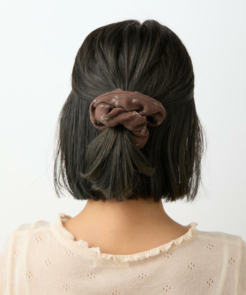 凹凸のある編地に、さりげない小花柄が可愛いシュシュ。 落ち着いたカラー展開で、大人可愛いガーリーな雰囲気に仕上げてくれます。 ヘアアレンジだけでなく、ブレスレット感覚で手首につけても◎