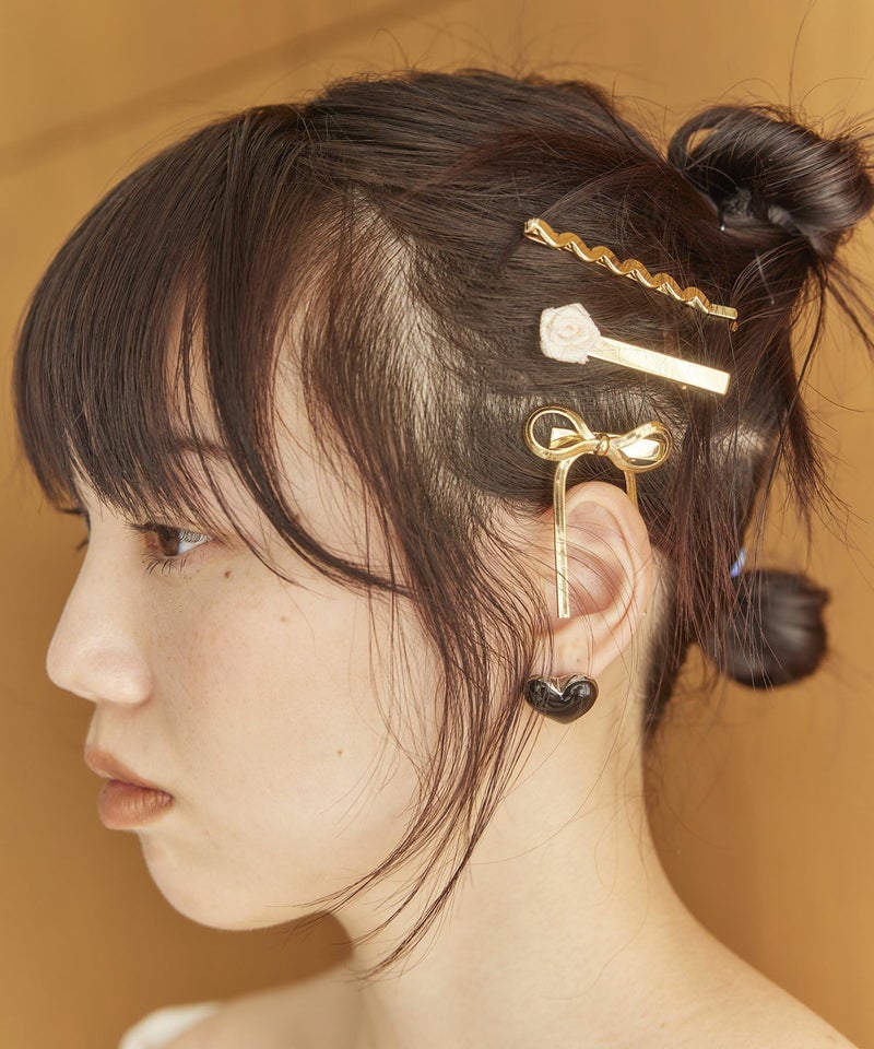立体的なローズモチーフがポイントのヘアクリップセット。 主張しすぎないサイズ感なので、お持ちのヘアアクセサリーとあわせて使える。 デイリーにはもちろん、オケージョンシーンにもおすすめです。 スタイリングのアクセントになってくれる印象的なアイテムです。