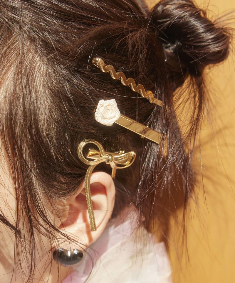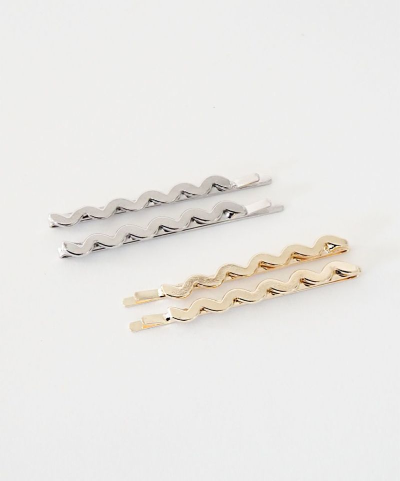 なみなみモチーフがポイントのヘアピンセット。 ツヤ感のあるため、カジュアルにもキレイめにも合わせやすい〇 結んだ髪にもおろした髪にもさっと付けるだけで、オシャレ度がアップします!