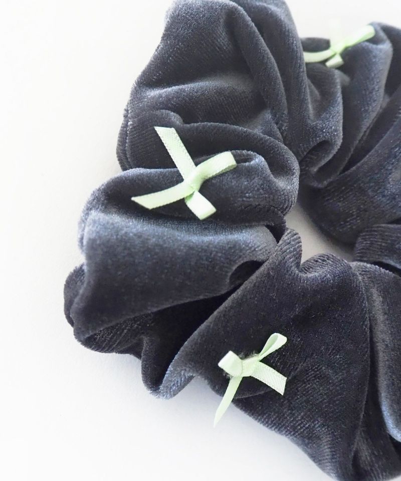 ミニリボンが可愛いシュシュ。 程よいボリューム感がヘアアレンジのポイントに。 ベロア素材なので、スタイリングが上品にまとまります。