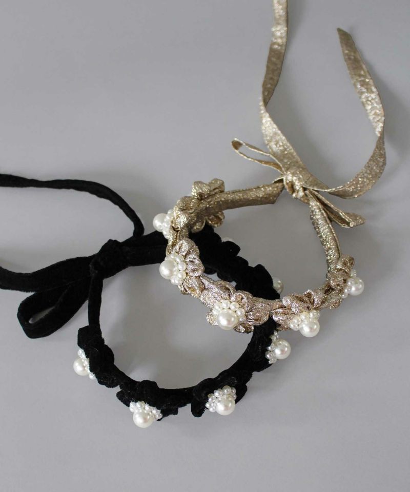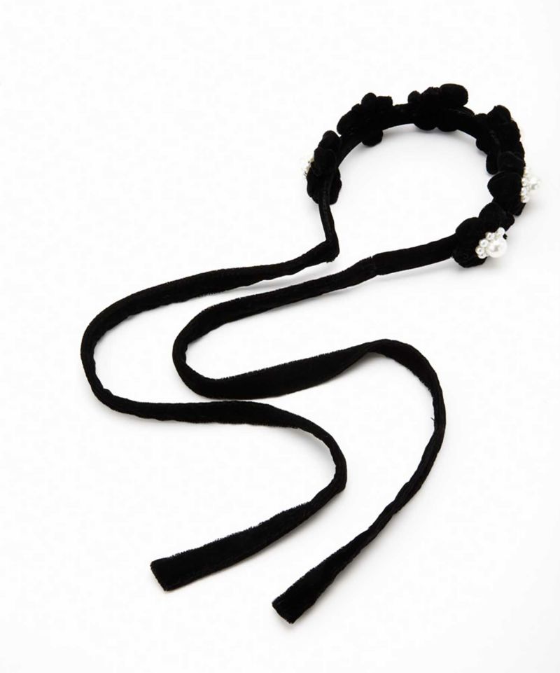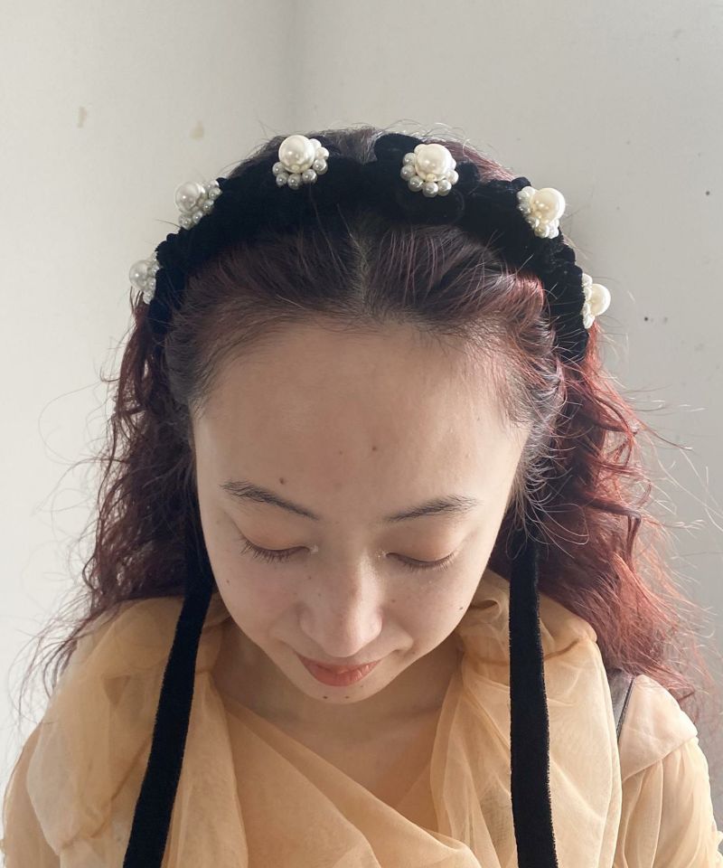 パール調のフラワーモチーフが目を惹くカチューシャ。