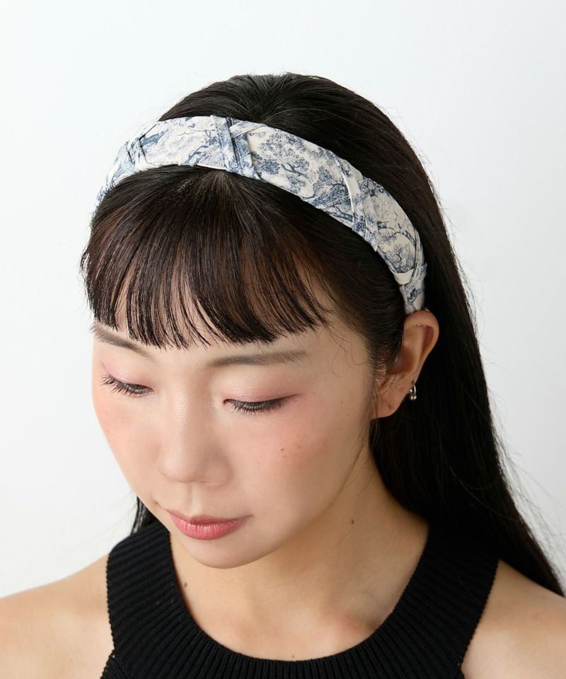 繊細なアンティーク柄が上品な印象を与えるカチューシャ。 柔らかな色味とツイストデザインが、クラシカルで大人可愛い雰囲気を演出します。 普段使いはもちろん、特別な日のアクセントにもおすすめのアイテムです。