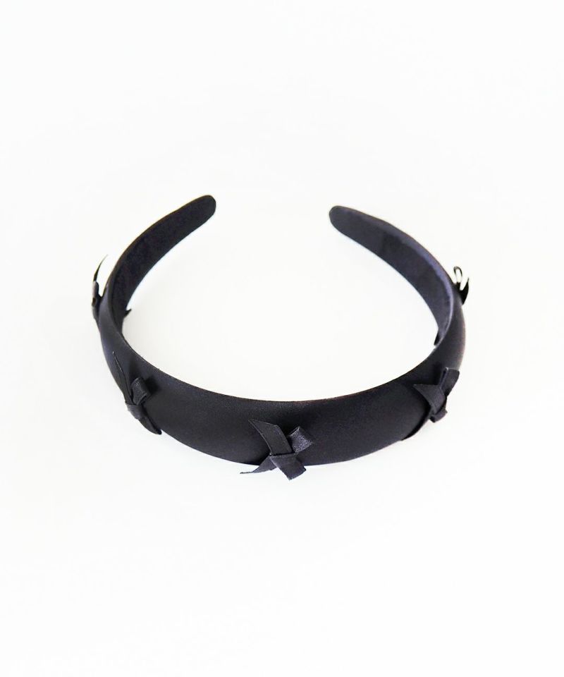 小さなリボンをあしらったサテン素材のカチューシャ。
