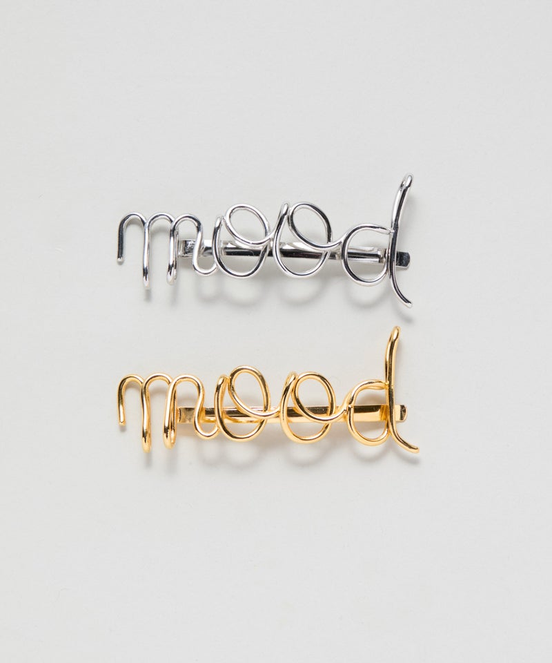 “mood”のレタリングヘアピン。 程よいサイズ感なので、バックスタイルにもサイドにも使いやすいアイテム。 同シリーズでの重ね付けもおすすめです。