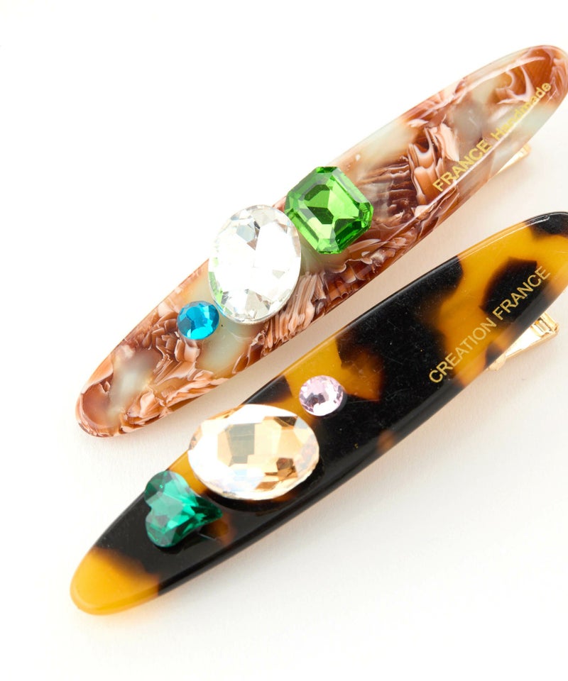 トレンド感のあるレオパードやダルメシアン柄とカラフルなビジューをあしらえたヘアクリップ。 1つつけるだけで一気に華やかに。他ヘアクリップとの重ね使いもこなれ感が出ておすすめです。