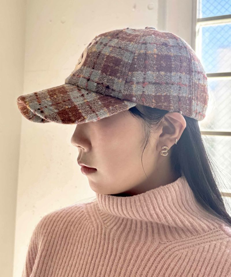 ブラックには起毛感のある素材を使用しており、秋冬らしいカラーが組み合わさったチェック柄はコーディネートの主役となる存在感です。 単調になりがちなアルファベットロゴキャップですが、お花をあしらいキャセリー二らしい唯一無二のアイテムに仕上げました。 ※チェック柄の出方には個体差が生じます。