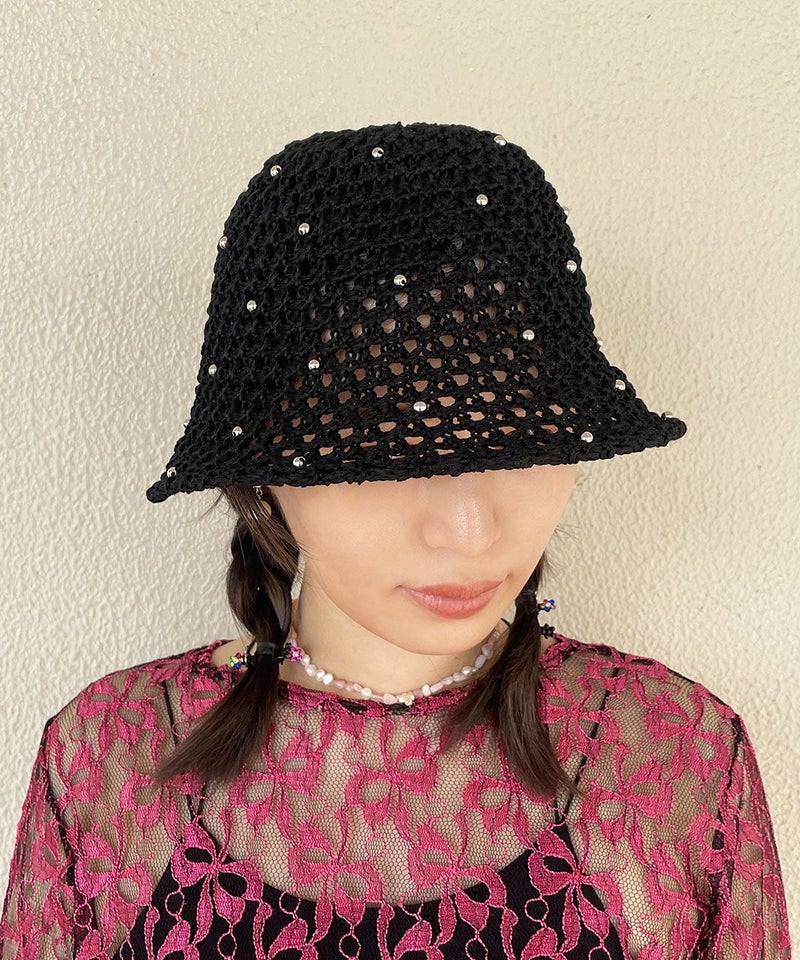 透け感のある編地がシーズンムード漂うサマーハット。 全体にちりばめられたビーズが、アクセサリーライクなアクセントを効かせる可愛いデザインです。 目深に被りやすい丸みのあるシルエットと使いやすいベーシックカラーも◎ キレイめコーデにも、Tシャツ×デニムのようなラフなコーデにも難なくマッチ。カジュアルすぎず合わせやすい上、ポリエステル素材なので、早い時季から取り入れていただけます。