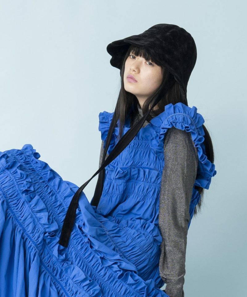 取り外し可能なリボンは、たらしても顎下で結んでも可愛くスタイリング可能。