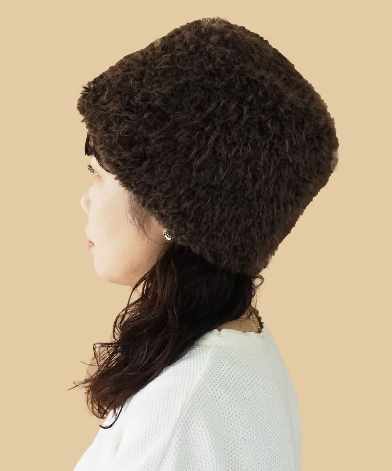 カールがかったフェイクファーが愛らしい表情を演出するベアロシアンキャップ。