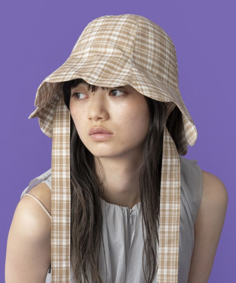 顔まわりをカバーしてくれる広めのつばは、小顔効果だけではなく紫外線対策にも。