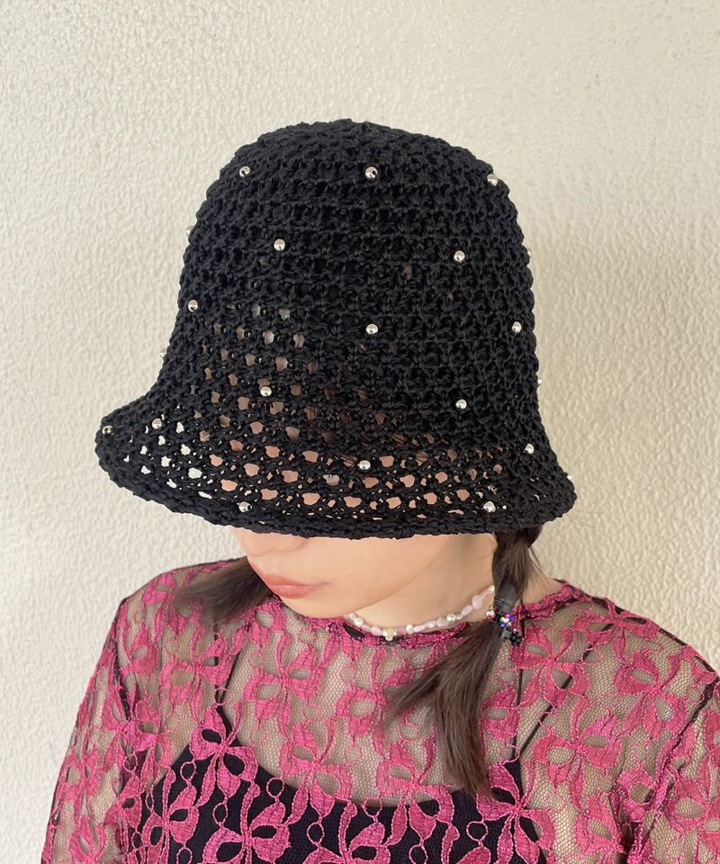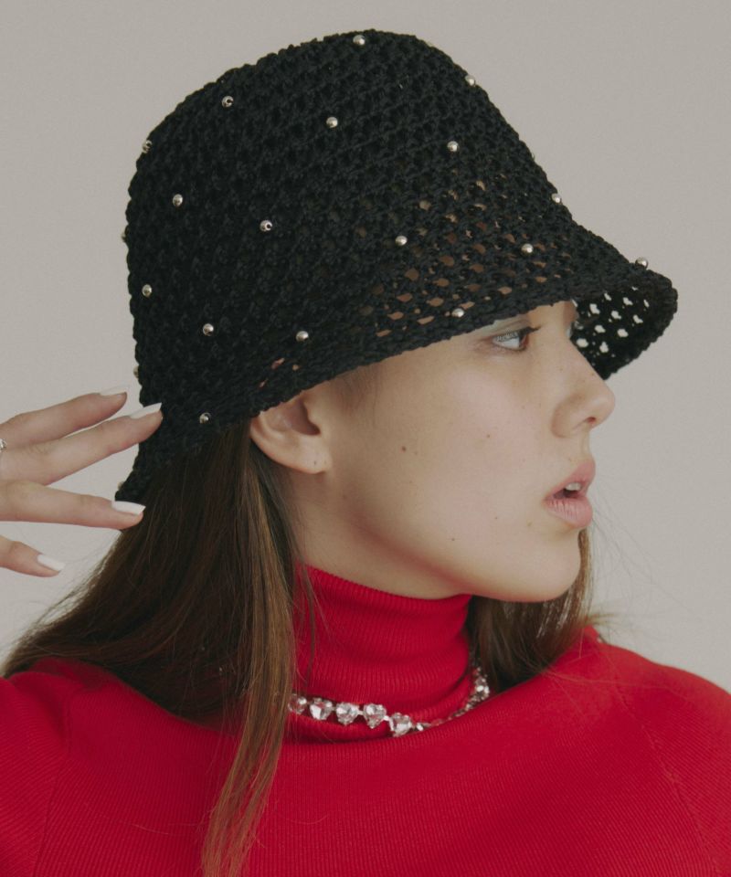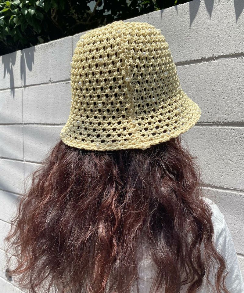 透け感のある編地がシーズンムード漂うサマーハット。 全体にちりばめられたビーズが、アクセサリーライクなアクセントを効かせる可愛いデザインです。 目深に被りやすい丸みのあるシルエットと使いやすいベーシックカラーも◎ キレイめコーデにも、Tシャツ×デニムのようなラフなコーデにも難なくマッチ。カジュアルすぎず合わせやすい上、ポリエステル素材なので、早い時季から取り入れていただけます。