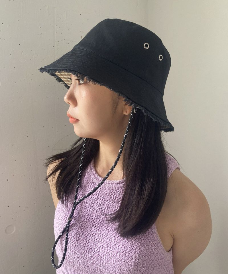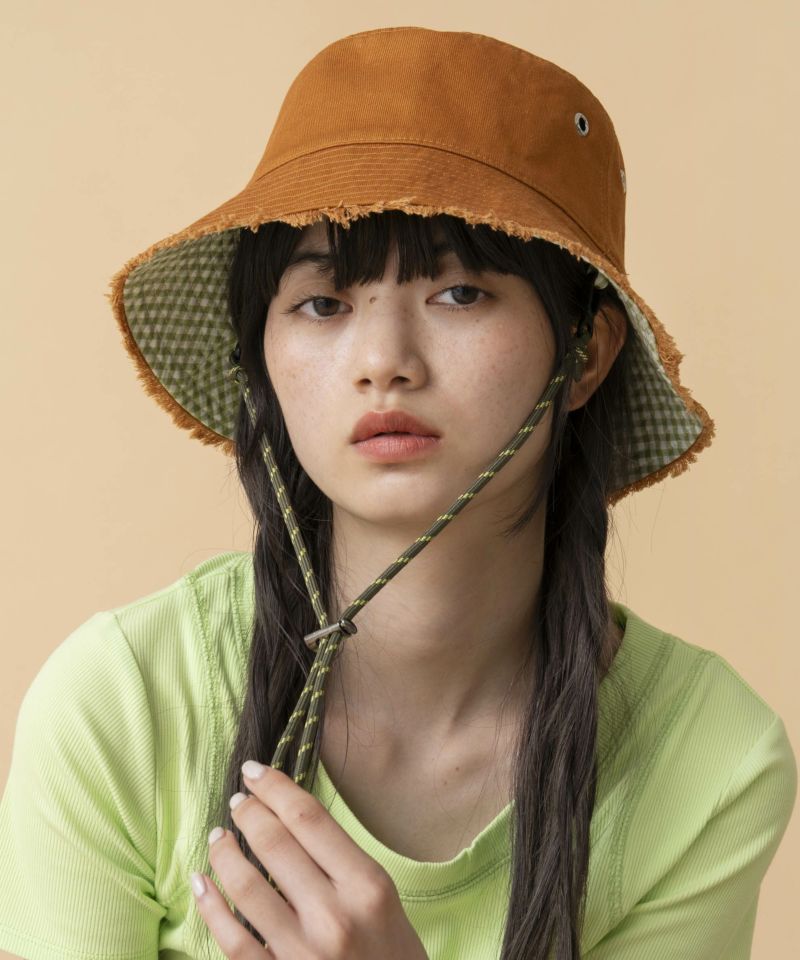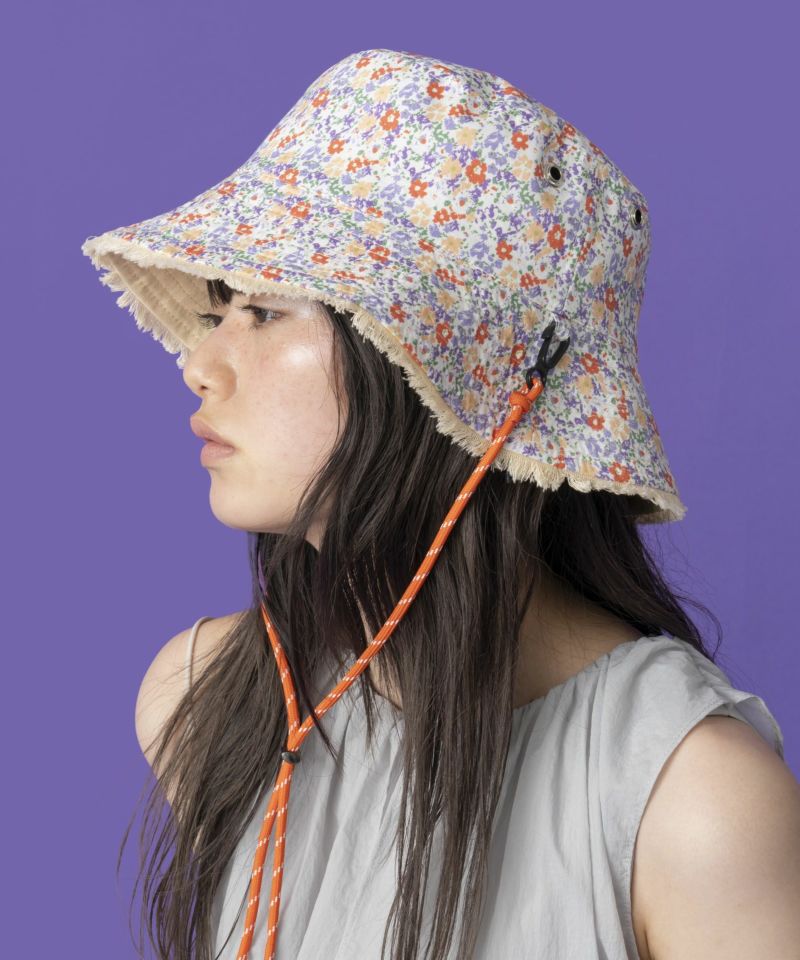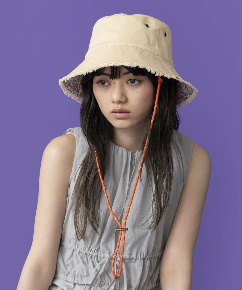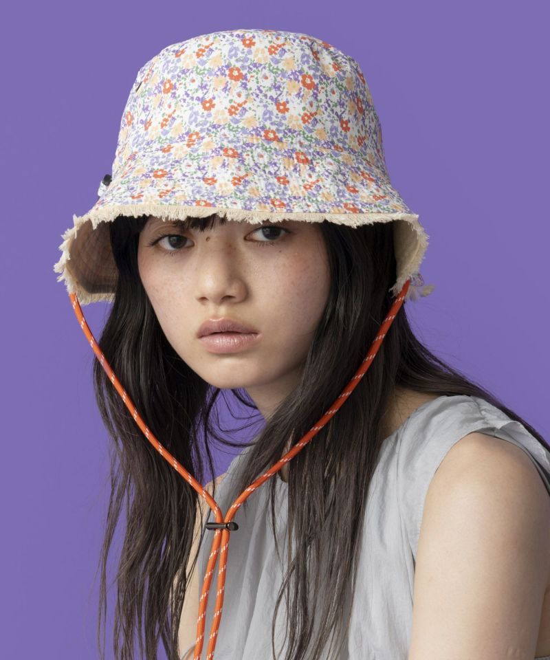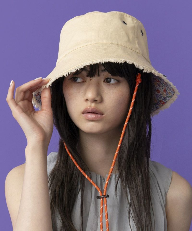 毎年人気のリバーシブルで楽しめるバケットハット。 裏側の柄生地がかぶった際にちらりと見えるところがポイントです。 使いやすいサイズ感もこだわり、畳んでバッグの中へ入れて持ち運びしやすい素材です。