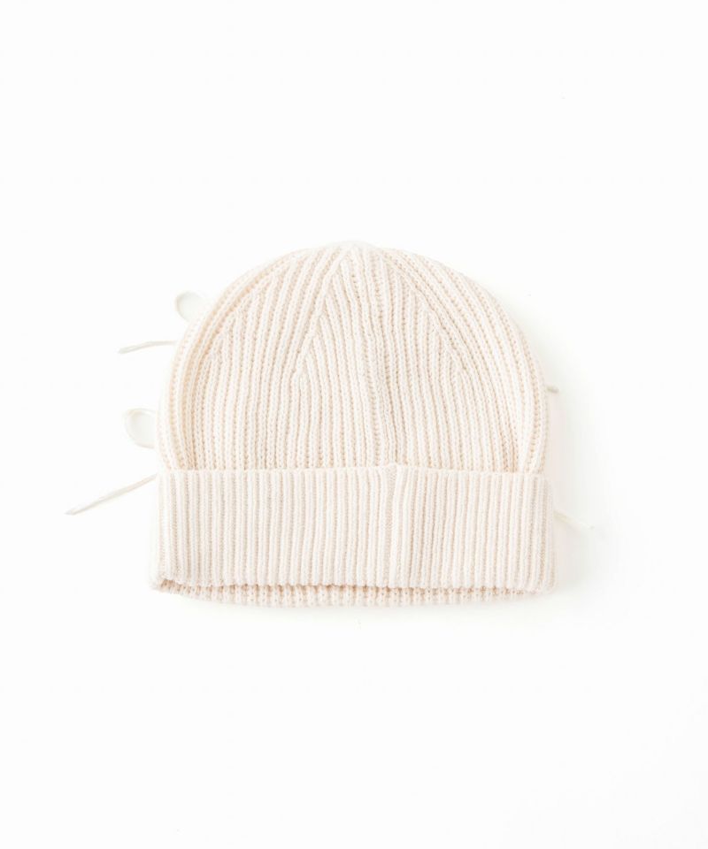 つやっと可愛いリボンがたくさんついたワッチ。 ワッチ本体のコットン素材とのMIX感により、カジュアルにかぶっていただけます。 編地をゆるめにしているので、暑い日でも着用していただけます。