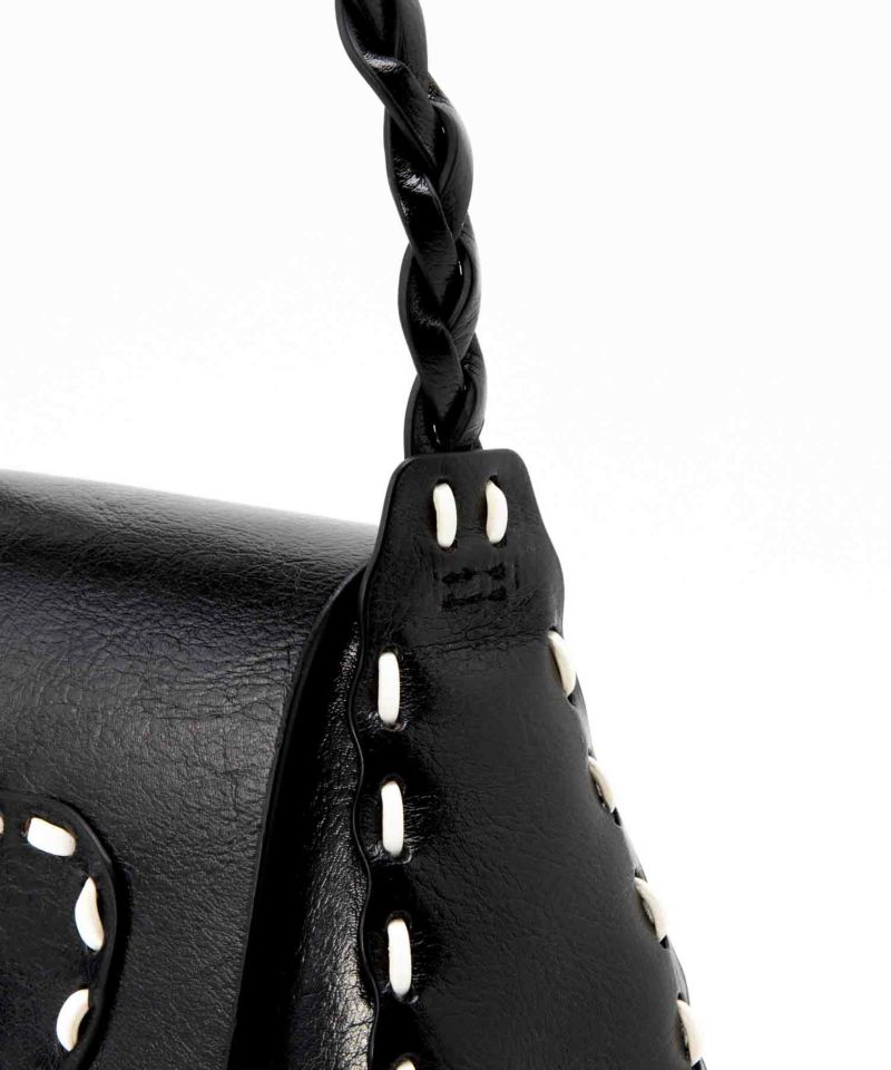 まるで紙のように軽いフェイクレザーを使用したバッグに、アンティークな雰囲気の太いステッチが映える一品。大きすぎず、小さすぎずのサイズ感で「ちょっとそこまで」のワンマイルバッグにおすすめです。