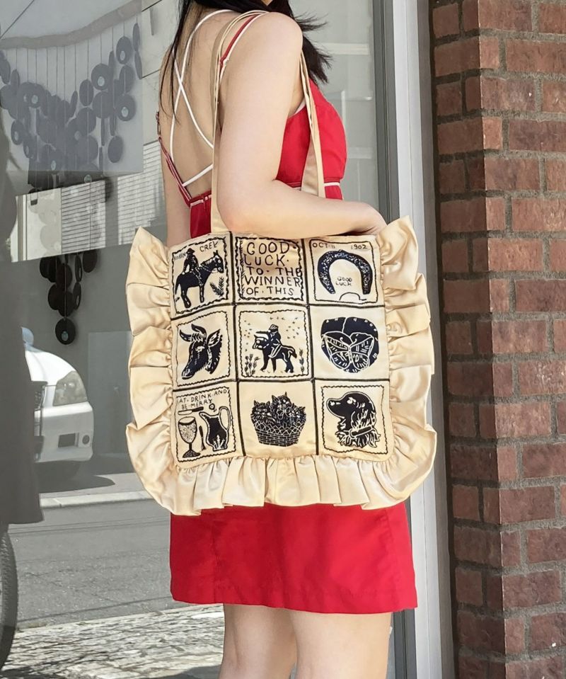 フリルがポイントのトートバッグ。