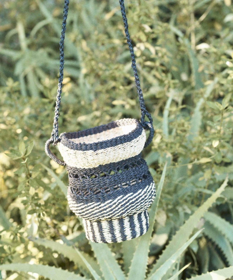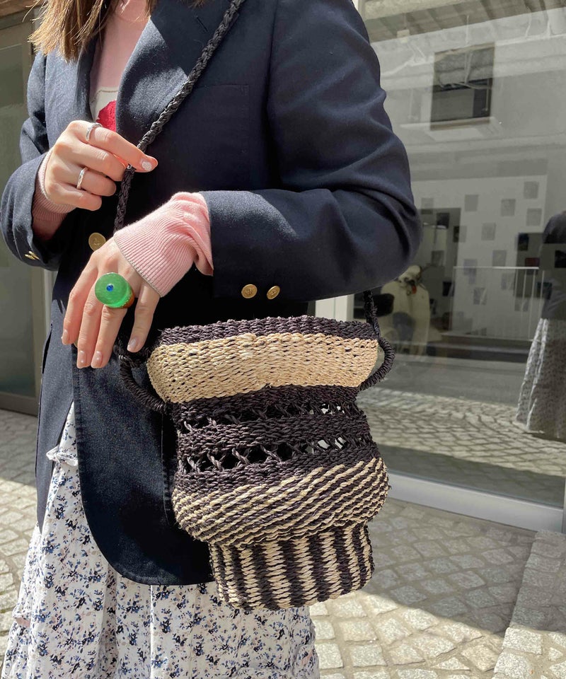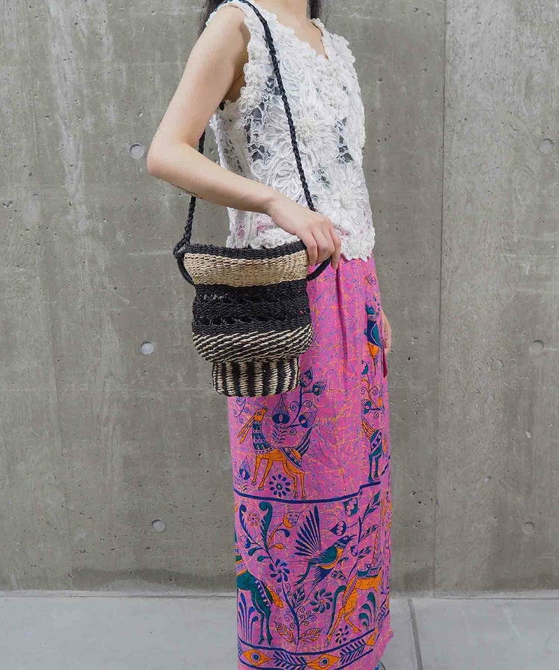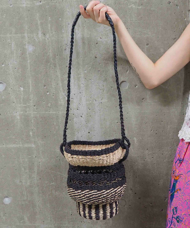 強度のあるアバカ素材で編んだ壺型が特徴的なカゴバッグ。フィリピンでハンドメイドで作ったこだわりの詰まったアイテム。