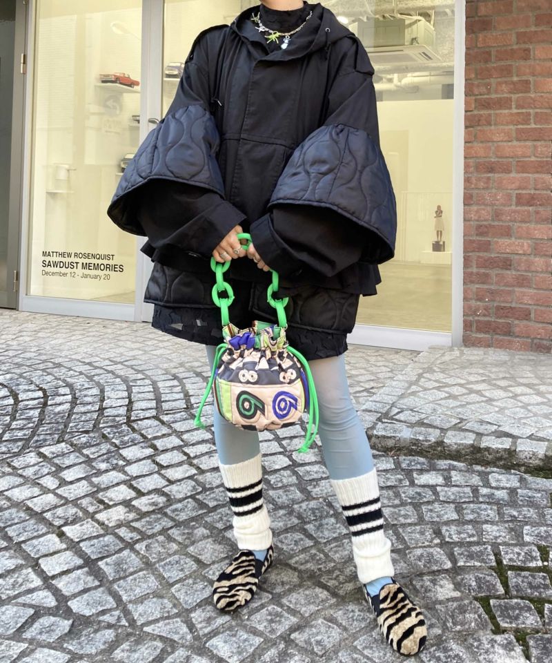見た目通り、インパクトあるデザインで、めちゃくちゃかわいいです!手にさげたり、ショルダーもいけるから便利です。ただ、巾着だからしっかり閉まらないから、荷物をぎゅーぎゅー詰めるのには注意ですね。