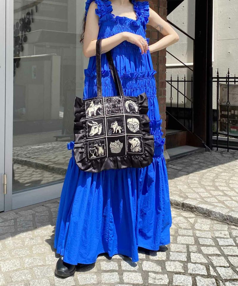 フリルがポイントのトートバッグ。