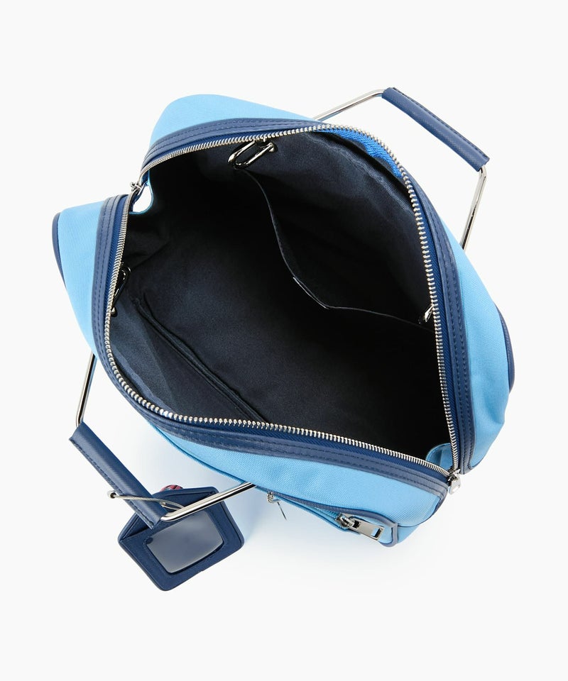 ヴィンテージのスポーツバッグを忠実に踏襲しつつ、オモテ面にはなぜかラケット用ポケット完備なパロディバッグ。