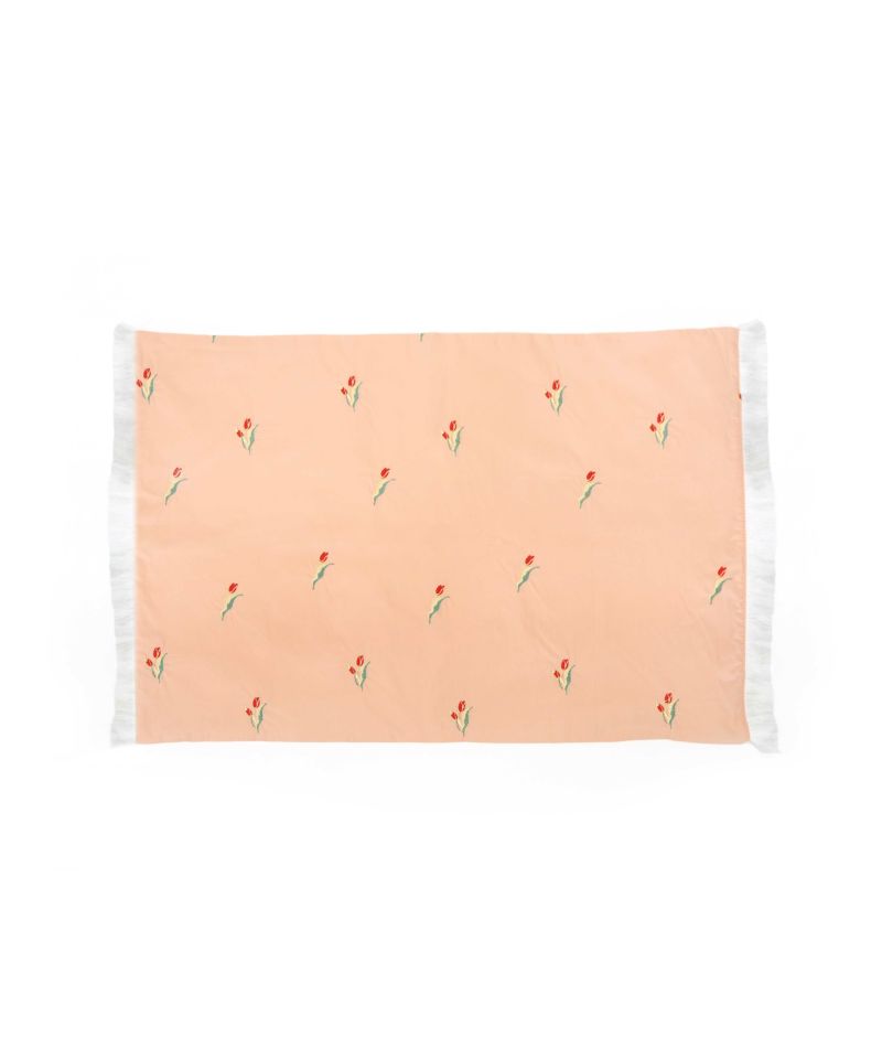 チューリップ柄になってバージョンアップ! 刺繍やフリンジ、アクセントになるカラーリングなど、かわいいを詰め込んだ枕カバー。 メインのカラーは淡い色なので、お部屋全体が優しい雰囲気に。 コットン素材で肌触りも◎ 背面の生地は刺繍なしのため、気分を変えたいときに無地側を使いお部屋の印象を変えてみても。 シングルサイズの掛布団カバーはこちら ▶フリンジ掛布団カバー