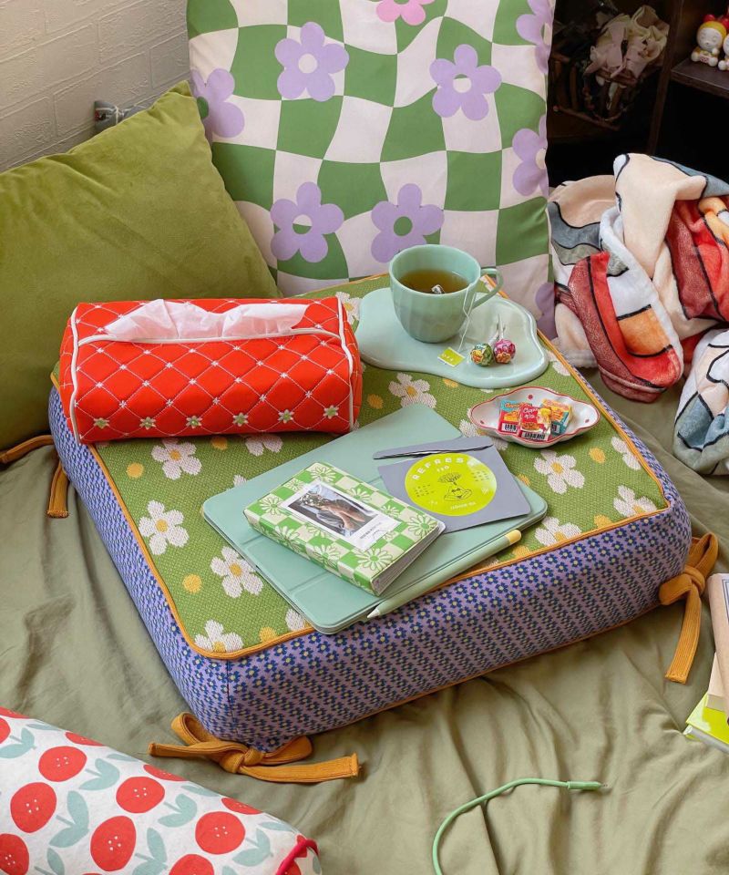 キャセリーニらしい柄が魅力的なクッション座布団。