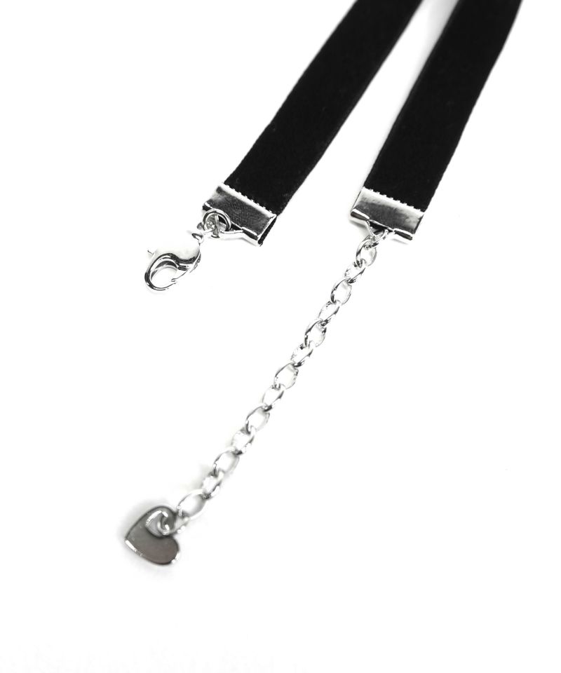 ベロアリボン素材に、メタルチャームをあしらったチョーカー。