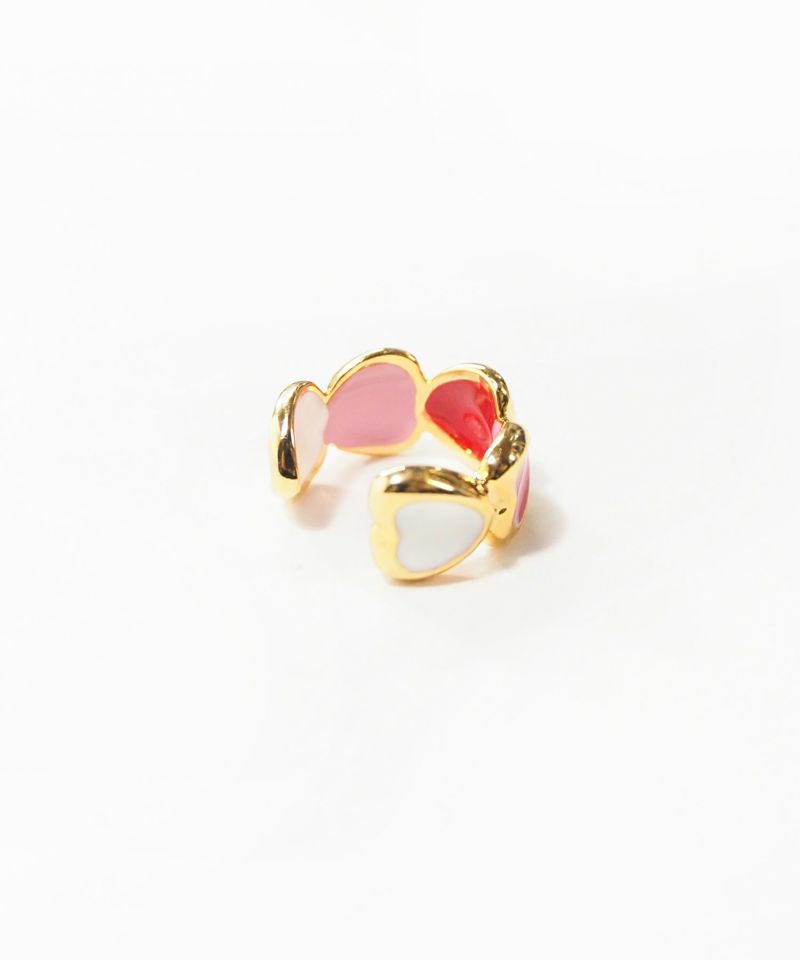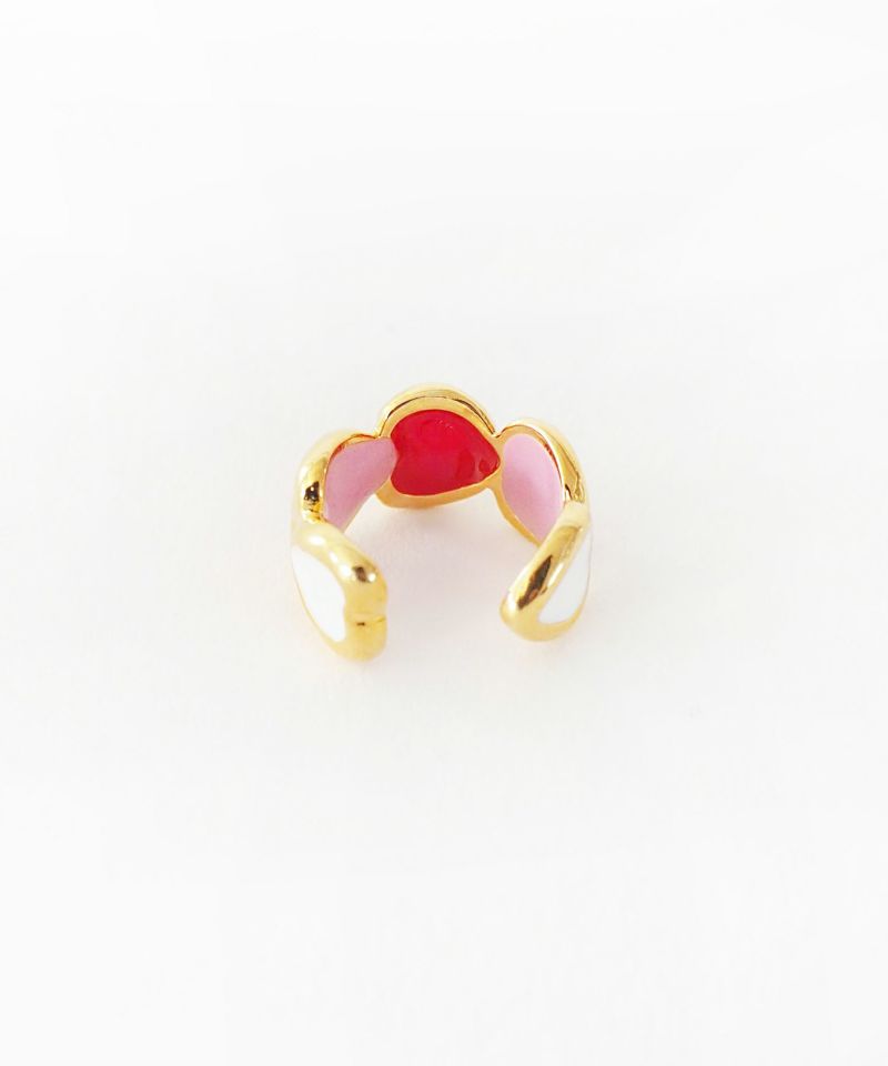 耳元で踊るハートの連なりが可愛いイヤーカフ。 合わせるだけで顔周りを印象的に見せてくれます。
