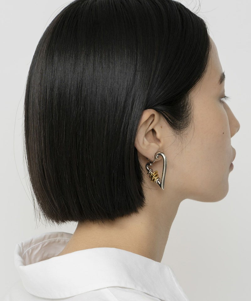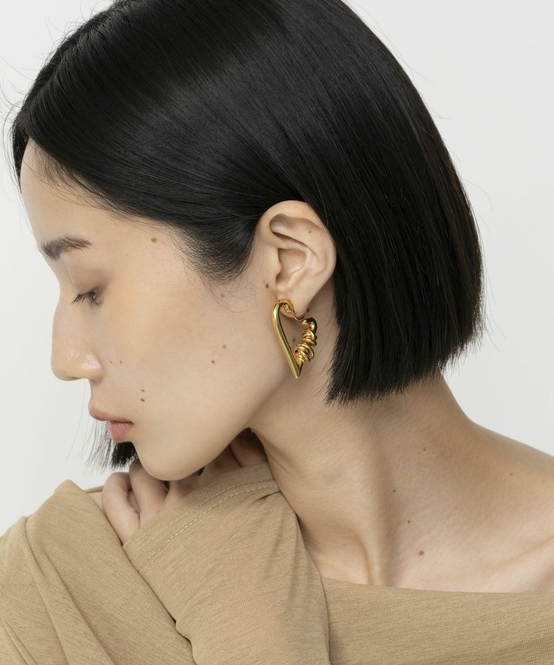 ハートモチーフに“COIL AROUND Series”のデザインを落とし込みました。 大ぶりなシルエットで印象的な顔回りを演出します。 ピアスタイプはこちら。