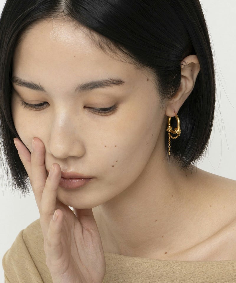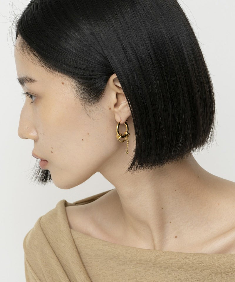 キラキラ揺れるオリジナルパーツをあしらった、Ornamentシリーズのピアス。 揺れるデザイン×程よいボリューム感で、印象的ながら合わせやすいアイテムです。*マルチについて チェーン先に付いているオリジナルパーツは[ゴールド]カラーです。