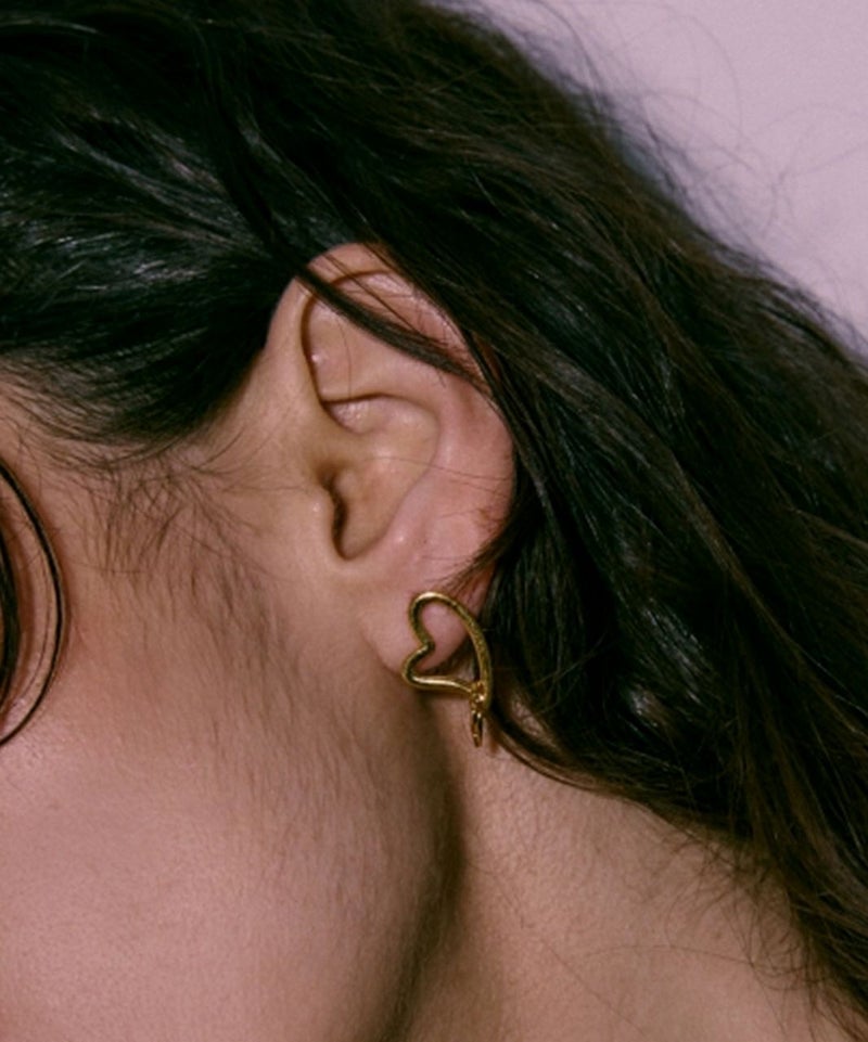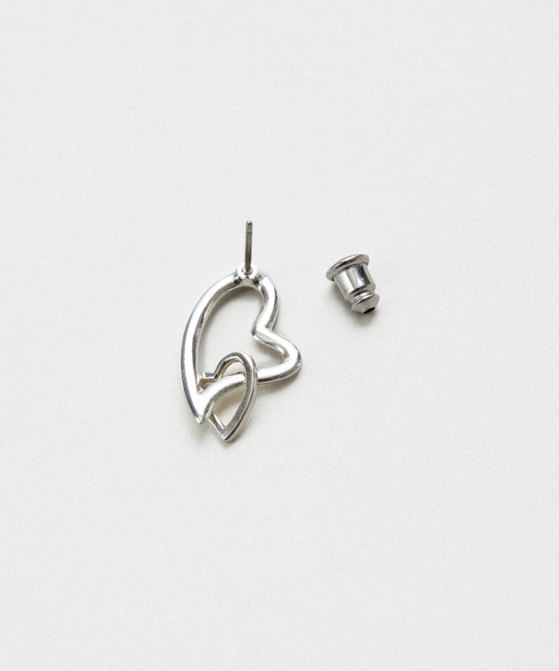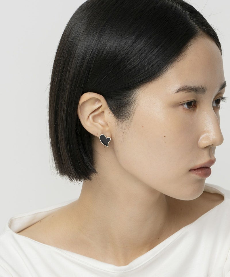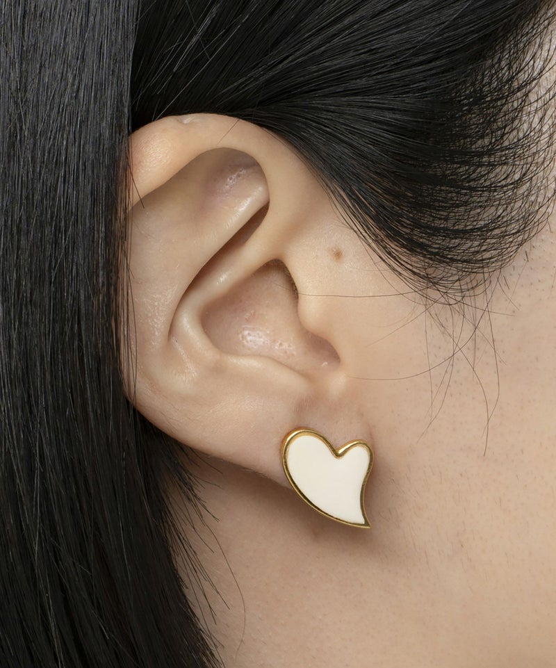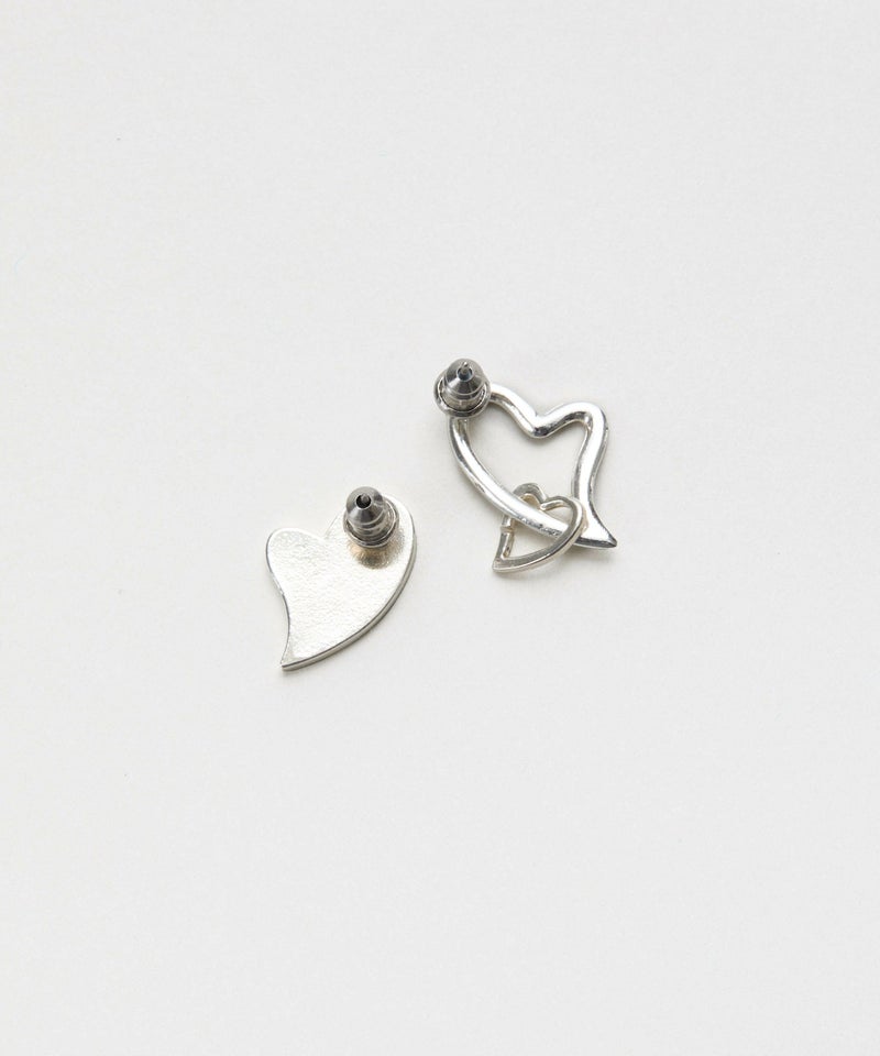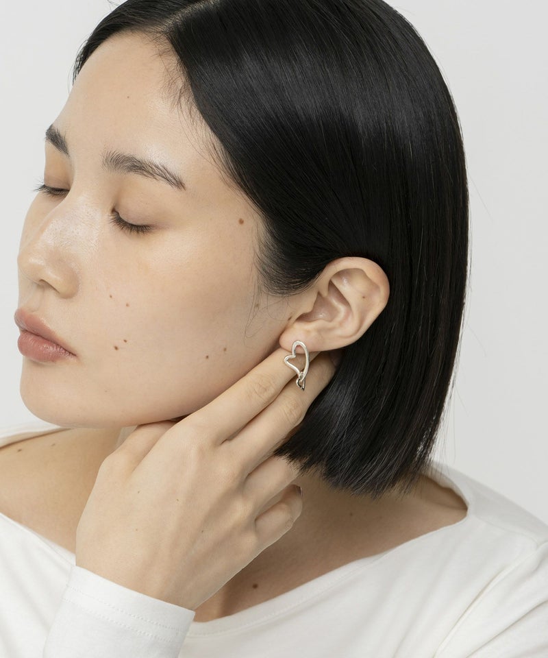 色々なハートの形を盛り込んだAmuseシリーズのピアス。 左右アシンメトリーなデザインがポイントで、一方のフレームには小さなハートパーツをON。 もう一方にはエポキシ樹脂をのせ、メタル素材の縁取りで仕上げています。 レッドはCASSELINI直営店だけの別注カラー。程よいサイジングで、さりげなく耳元を彩ります。