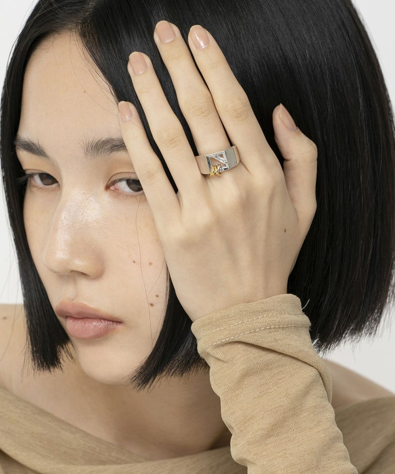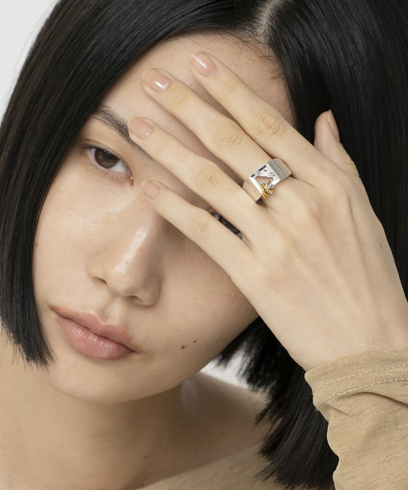 額縁の形をモチーフにした、シグネットデザインのリング。 繊細なディティールを取り入れながらも、リング幅を持たせることで、カジュアルなスタイリングにも取り入れやすくなっています。