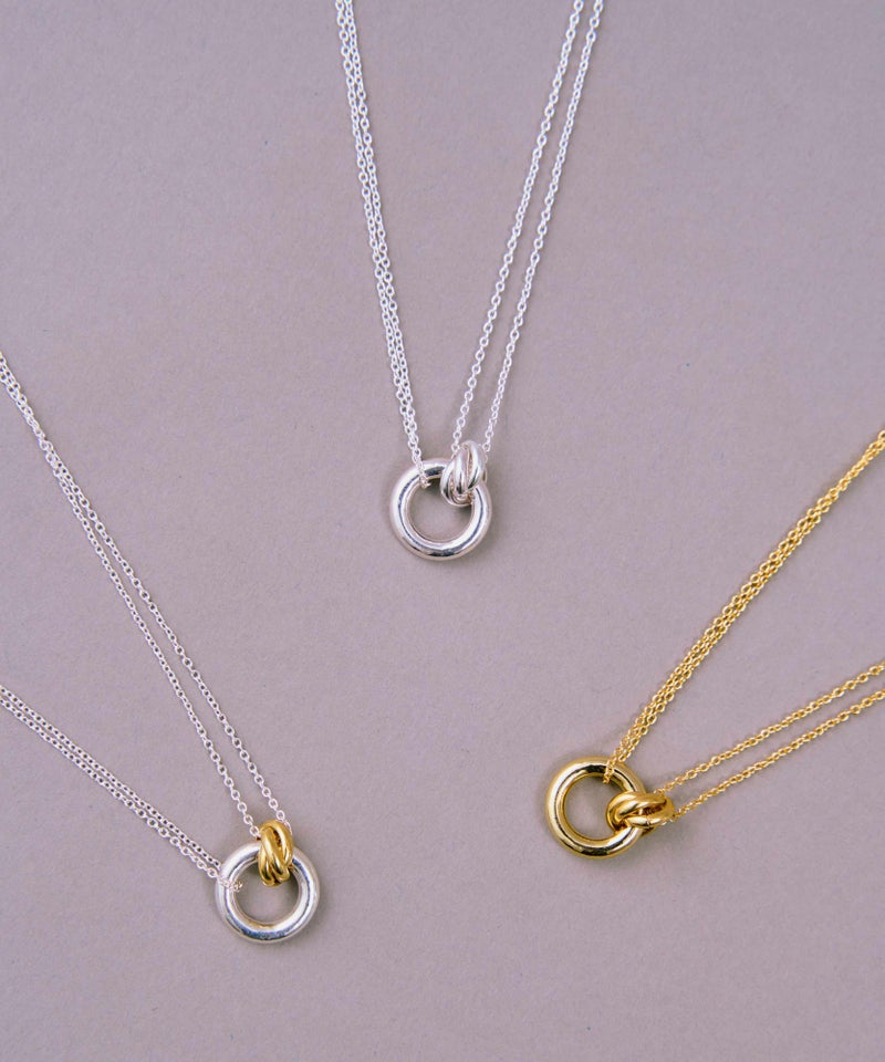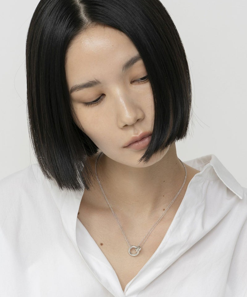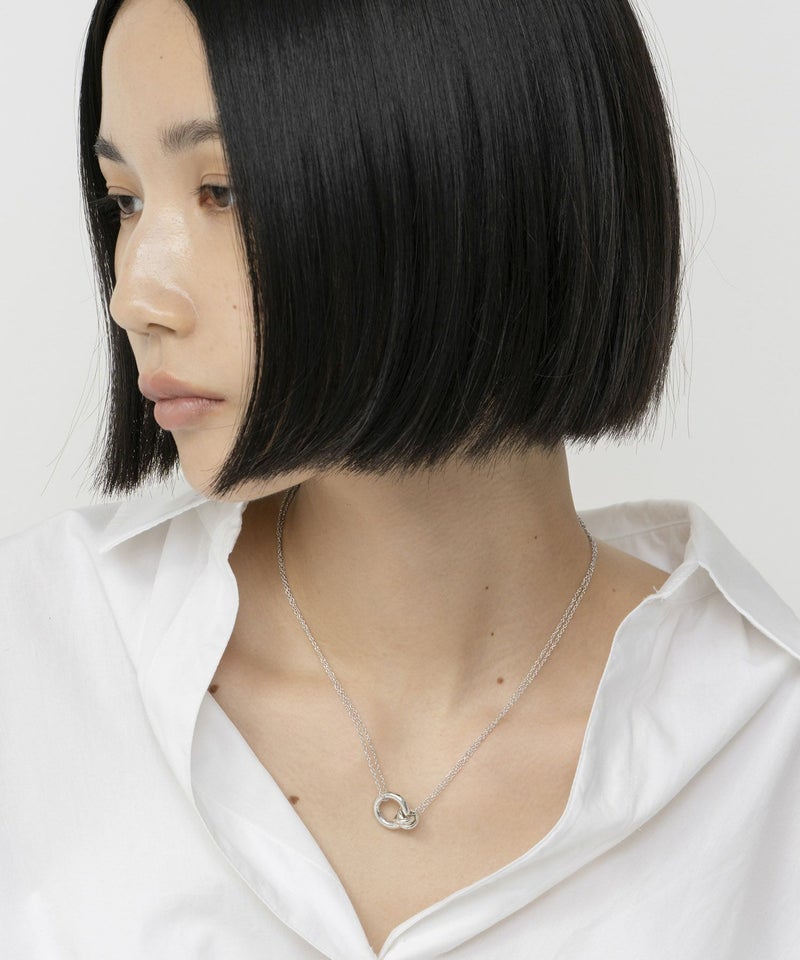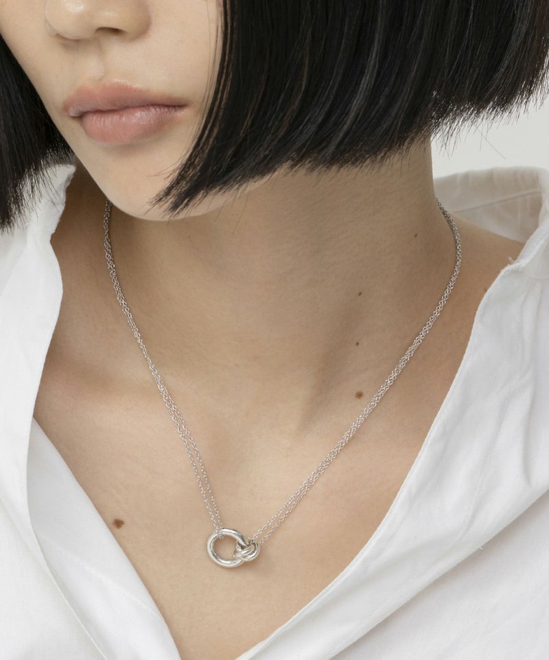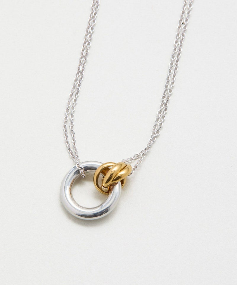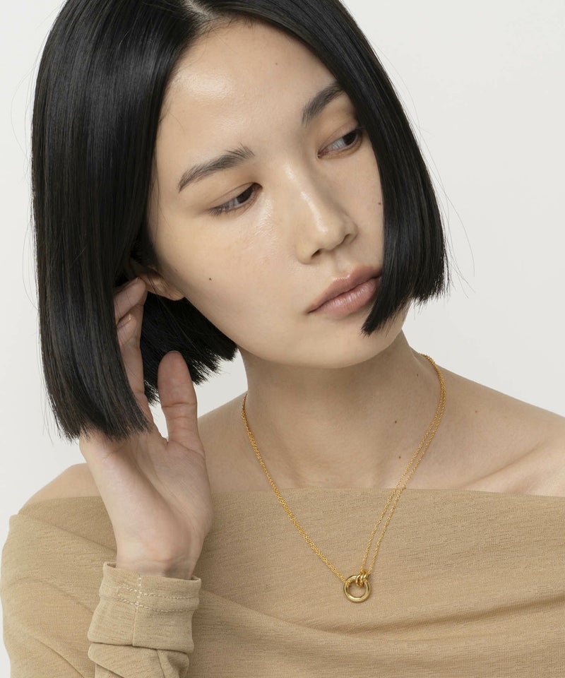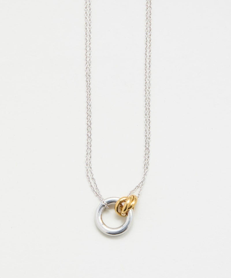 サークルモチーフにコイルを繋いだネックレス。 アシンメトリーなデザインや2連のチェーンなど、シンプルな中にもこだわりが光る印象的なデザインは、スタイリングのさりげないアクセントに。 デイリーユースにちょうどいいサイズ感で、様々な装いにフィット。