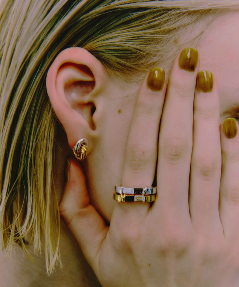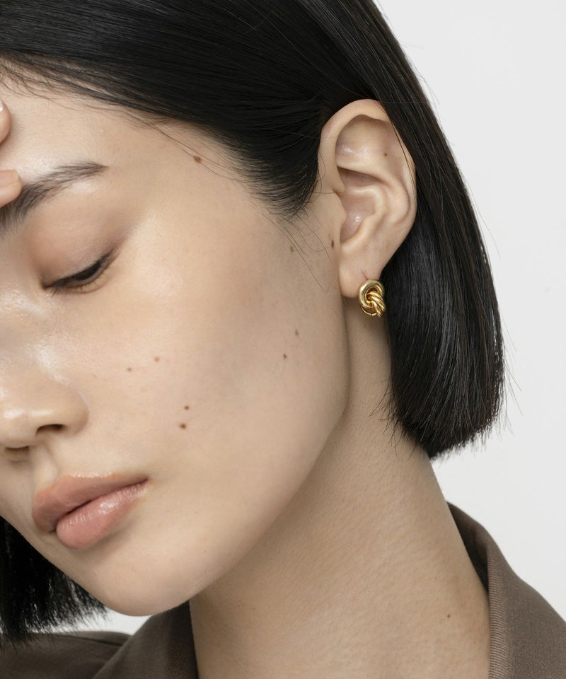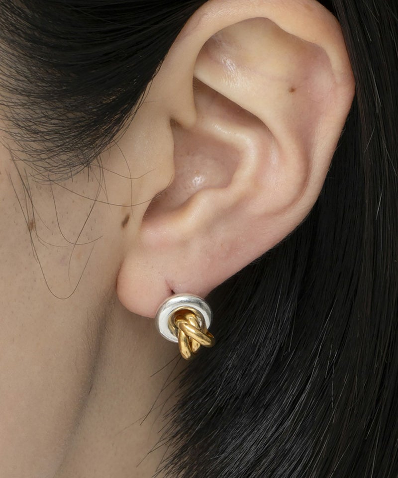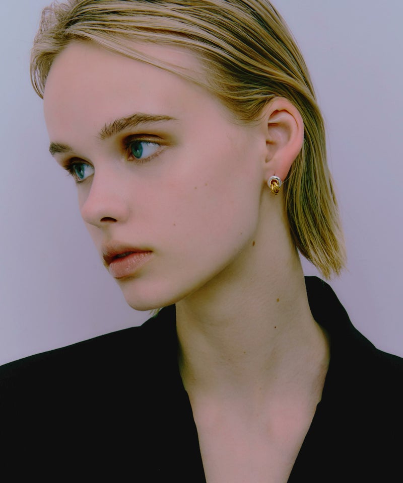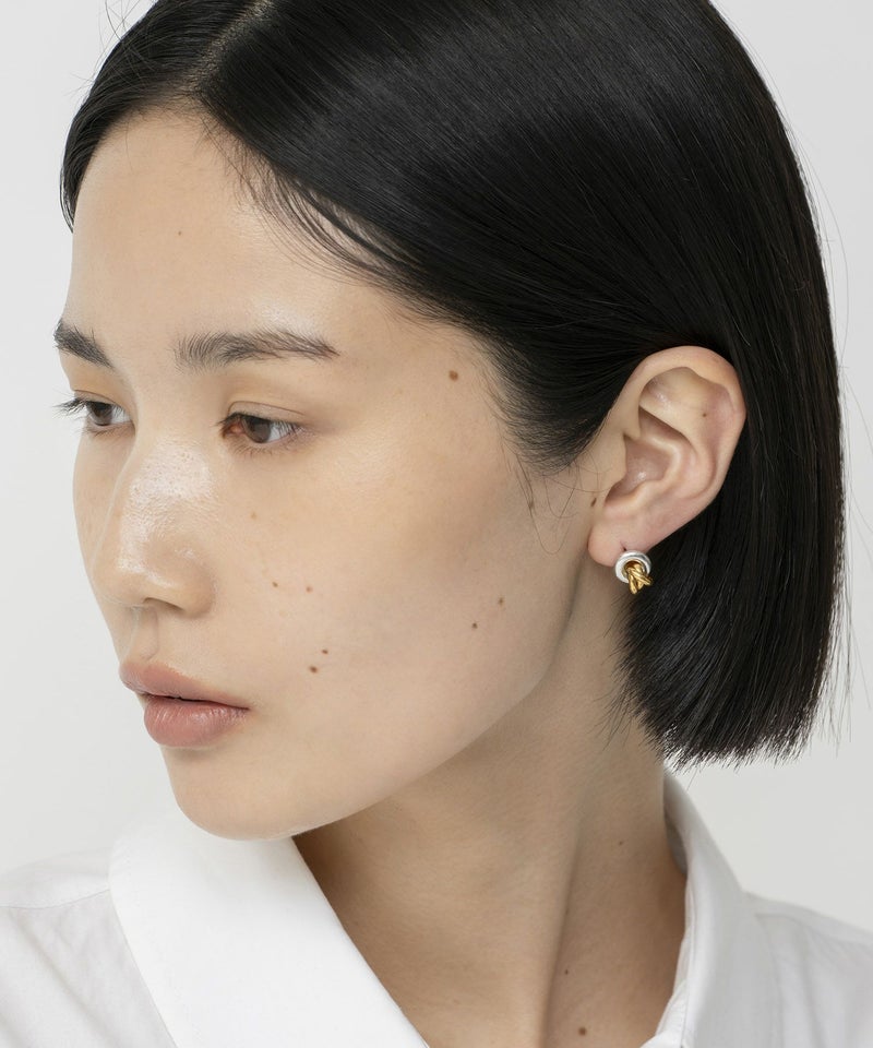 コイルモチーフがさりげないアクセントを効かせるピアス。 繊細さがありながら印象をぐっと引き締める絶妙なバランスで、程よい存在感を体現。 デイリーユースにちょうどいいサイジングで、シーンを選ばず活躍します。