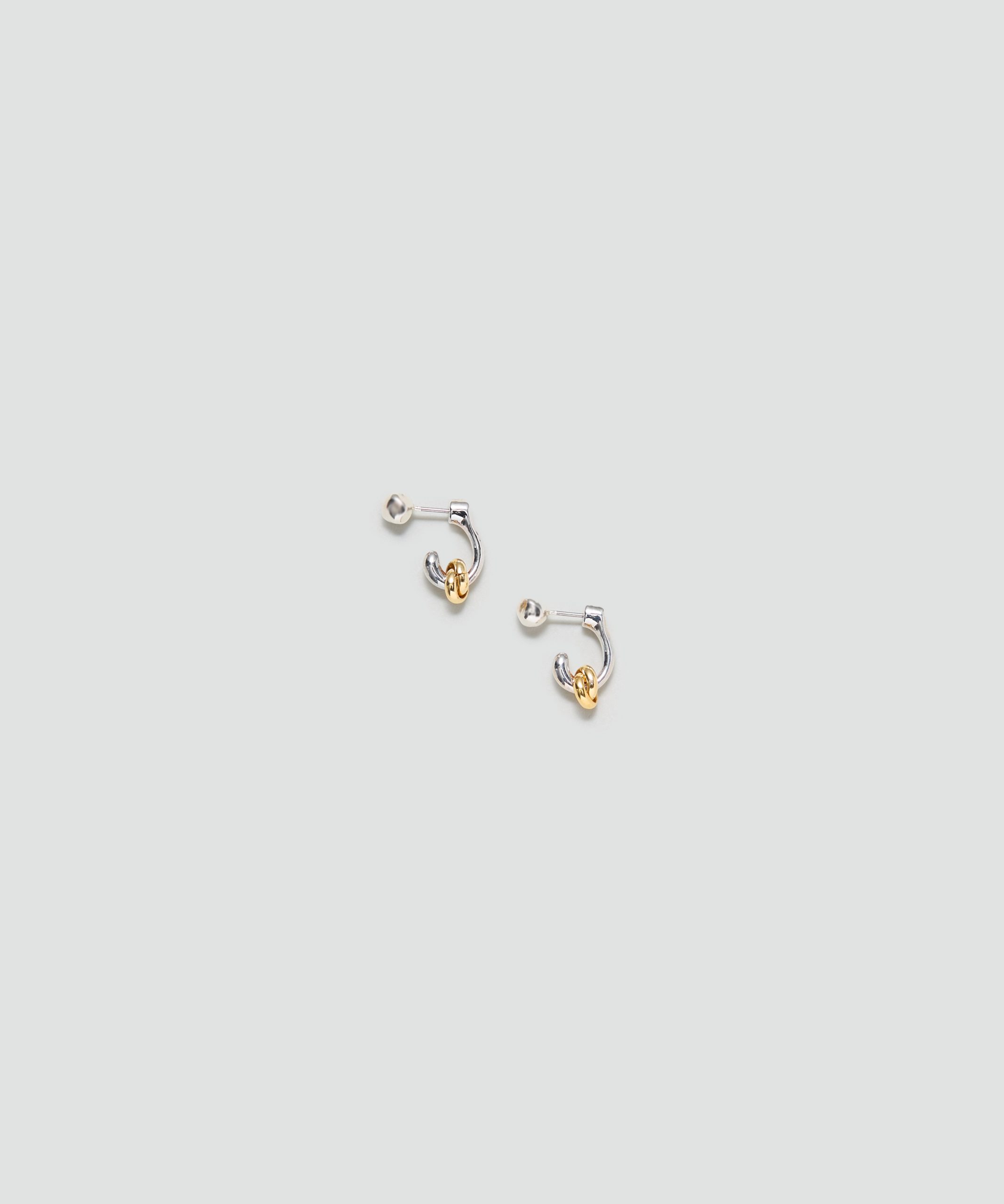 存在感のある形状とボリュームの Flow coilシリーズのイヤリング。二か所に配置したcoilのデザインが様々な角度からの印象を華やかに見せてくれます。