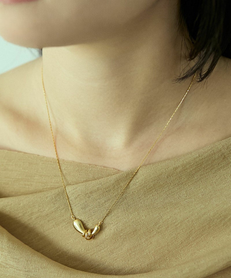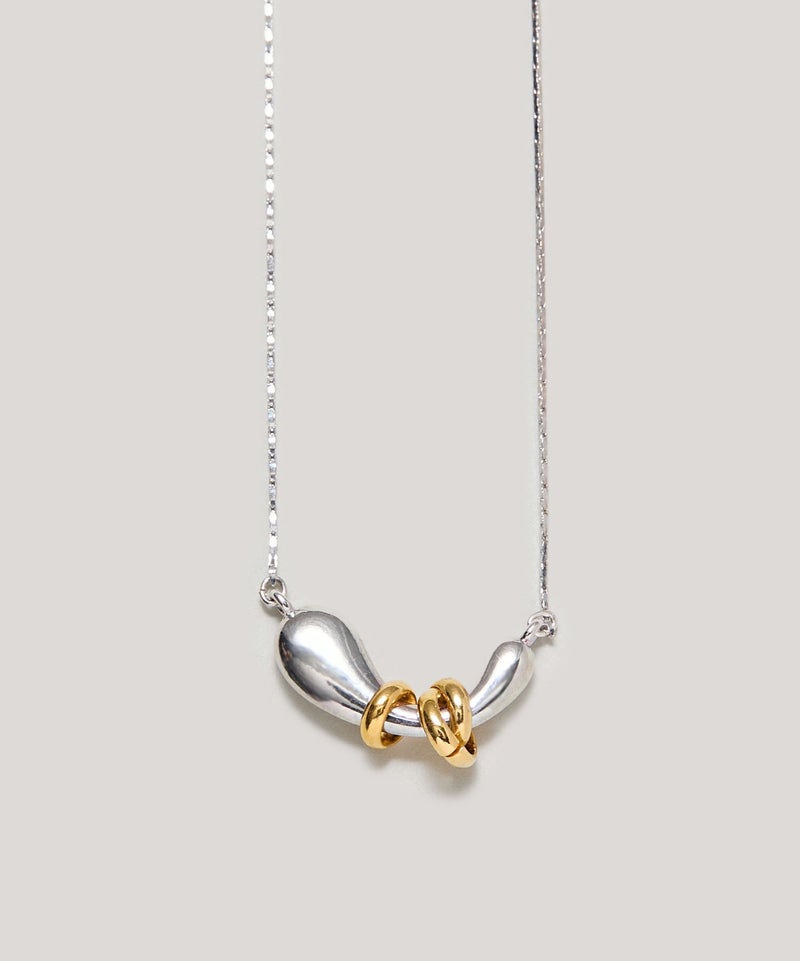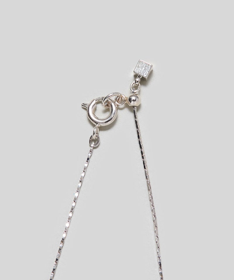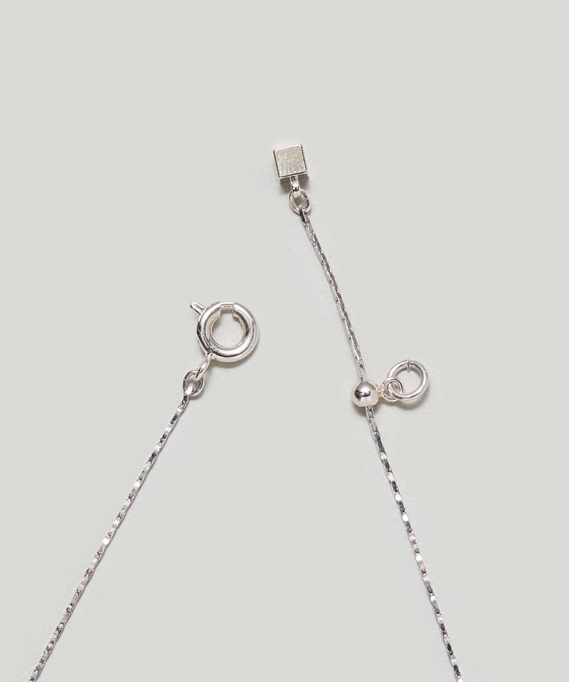 ニュアンスある形状にリングパーツをあしらった、Flow coilシリーズのネックレス。 丸みのあるトップと、細いスクエア型のチェーンとの新鮮なバランス感も魅力。 スライドパーツ式なので、首周りの長さを自由に調整いただけます。