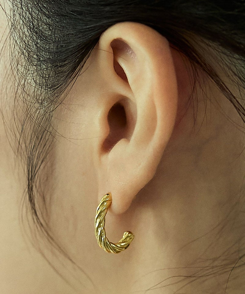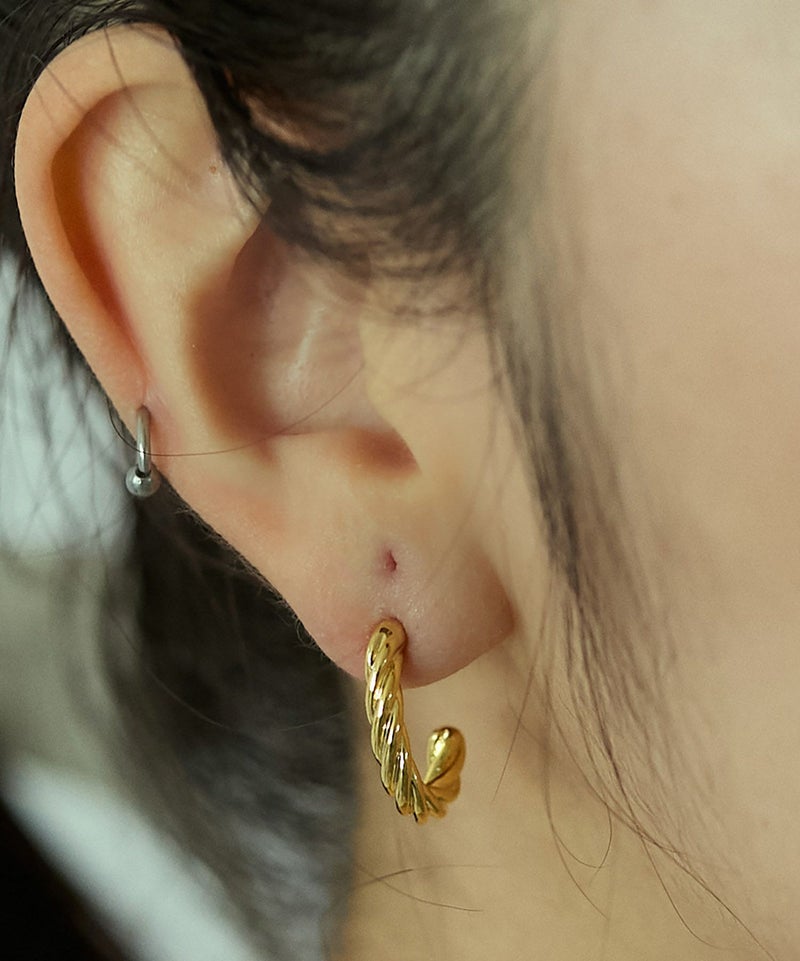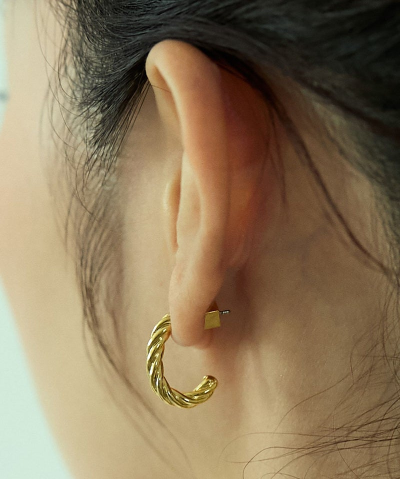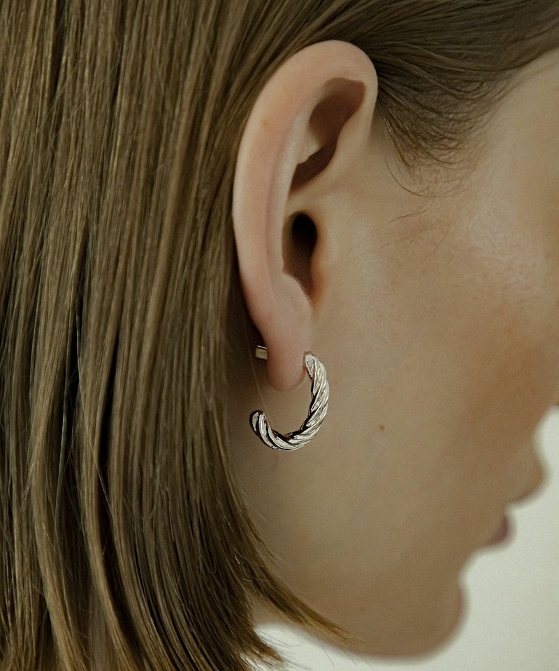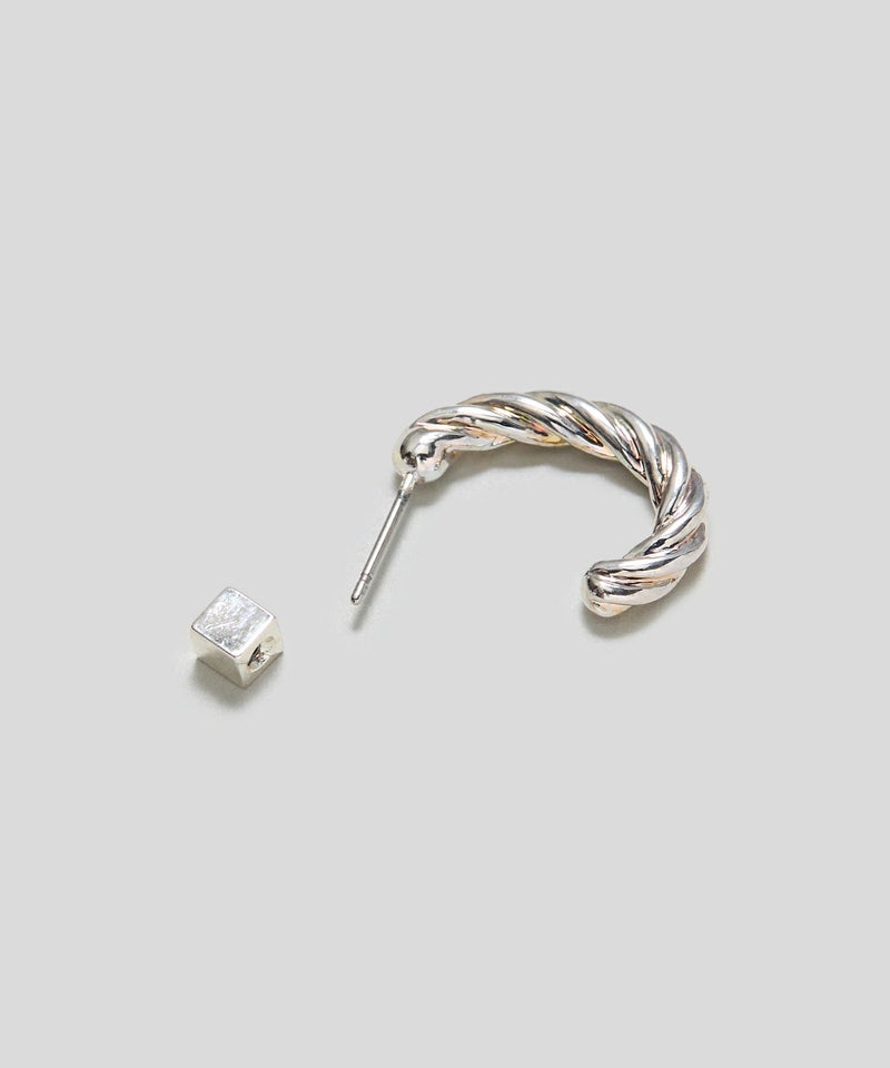 シンプルで飽きの来ない、長く使えるデザインのピアス。 Coilシリーズのネックレスとの相性も良く、他のアクセサリーと合わせやすいのが魅力です。 ピアスにはキューブキャッチを使用し、さりげないアクセントに。
