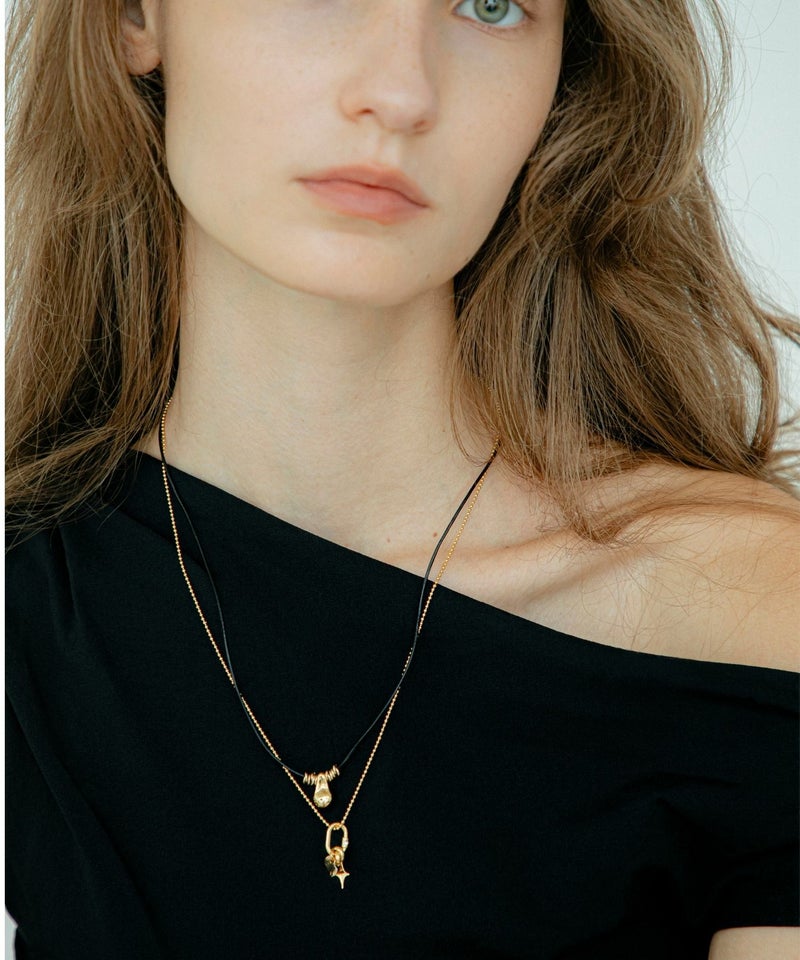 フロントに付いたオイスターパーツとリングパーツの組み合わせが、クラフト感のあるデザインのコードネックレス。 細いレザーコードは長めにしているので、短く着けた時は両サイドに垂らすと雰囲気のあるスタイリングが作れます。 Metal beads chokerとの重ね付けもおすすめ。