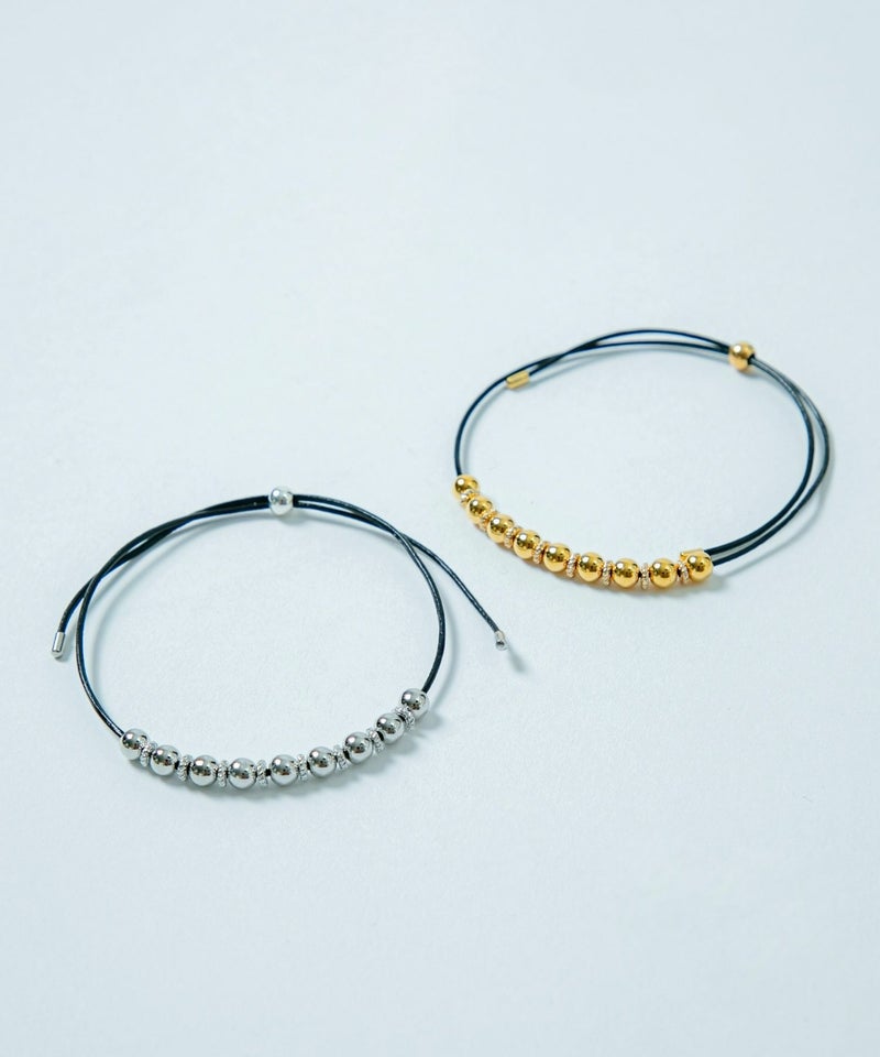 Metal beads chokerをそのままブレスレットのデザインにしたアイテム。 ミサンガ感覚で簡単に付けられ、重ね付けにもちょうど良い細さです。 同シリーズのネックレスはこちら