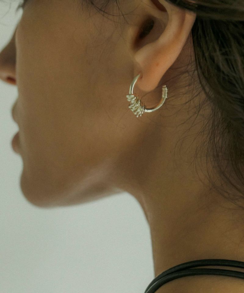 Coilパーツが付いてる部分だけでなく、ワイヤーが巻き付いてるようなアクセントがポイントのピアスです。