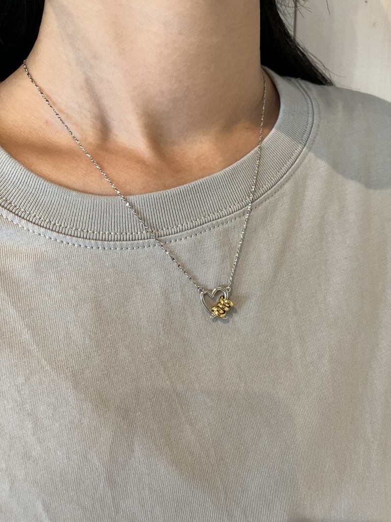 オープンハートにCoilが付いた新しいHeartシリーズのネックレス。 スライドボールで長さを変えてご使用頂けます。 ハイネックやタートルネックの上からつけるのにもオススメです。