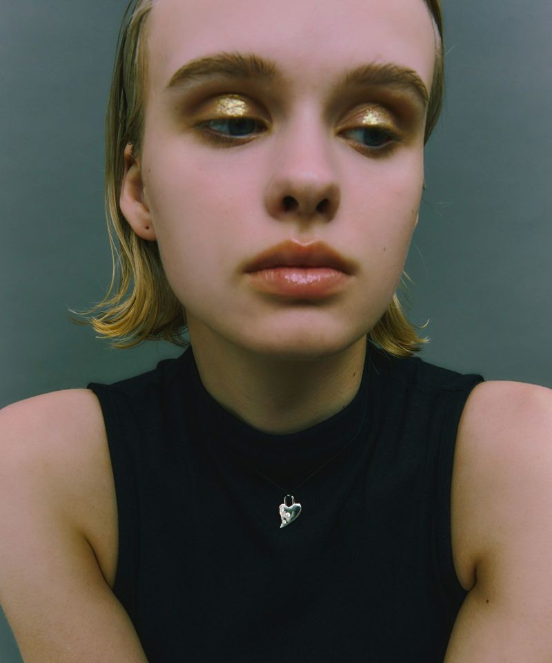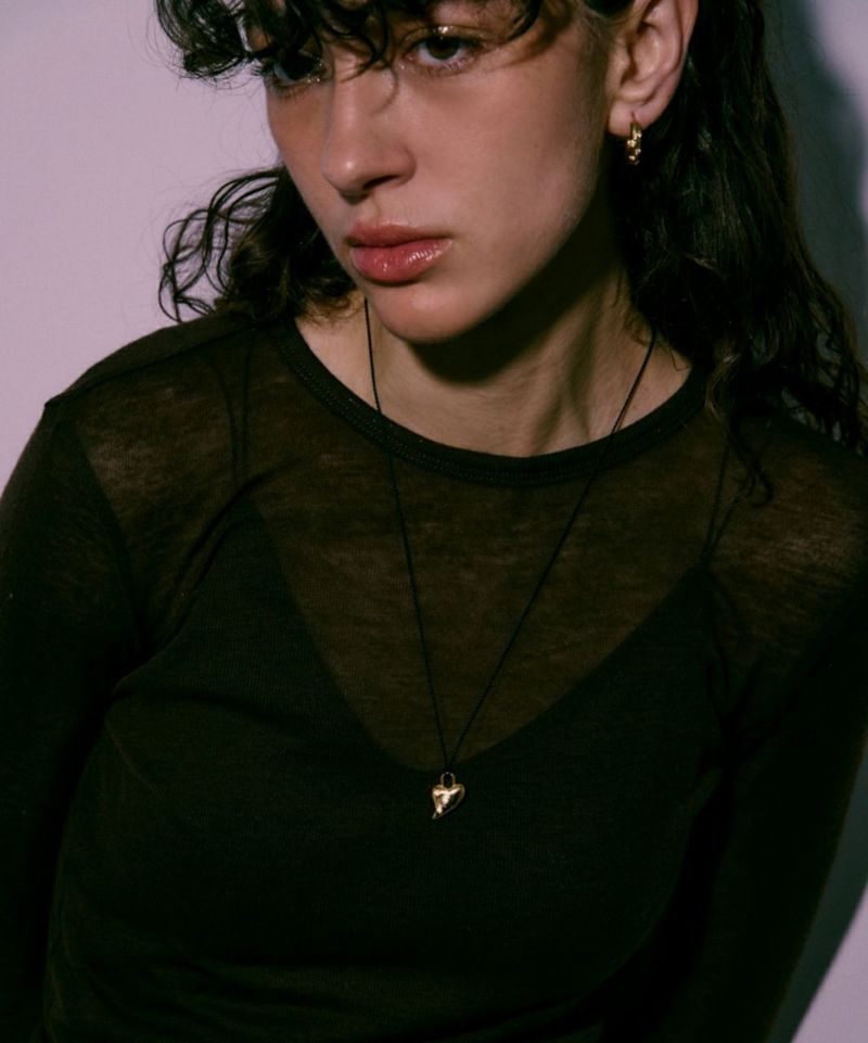 華奢なナイロンコードにハートのチャームが付いたデザインで、さりげないのに印象的。