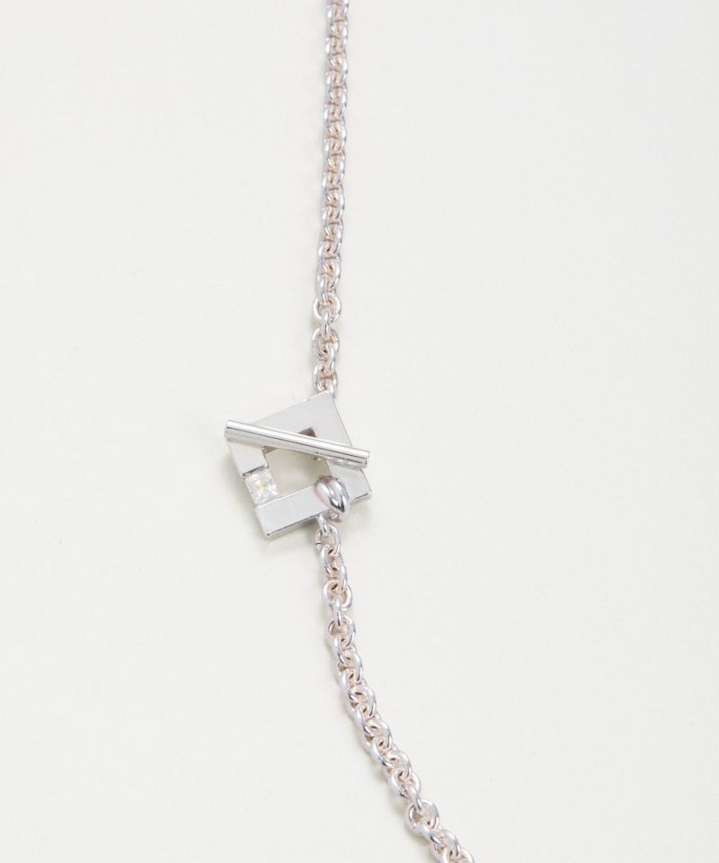スクエア型のオリジナルマンテルをあしらった、ロングチェーンネックレス。